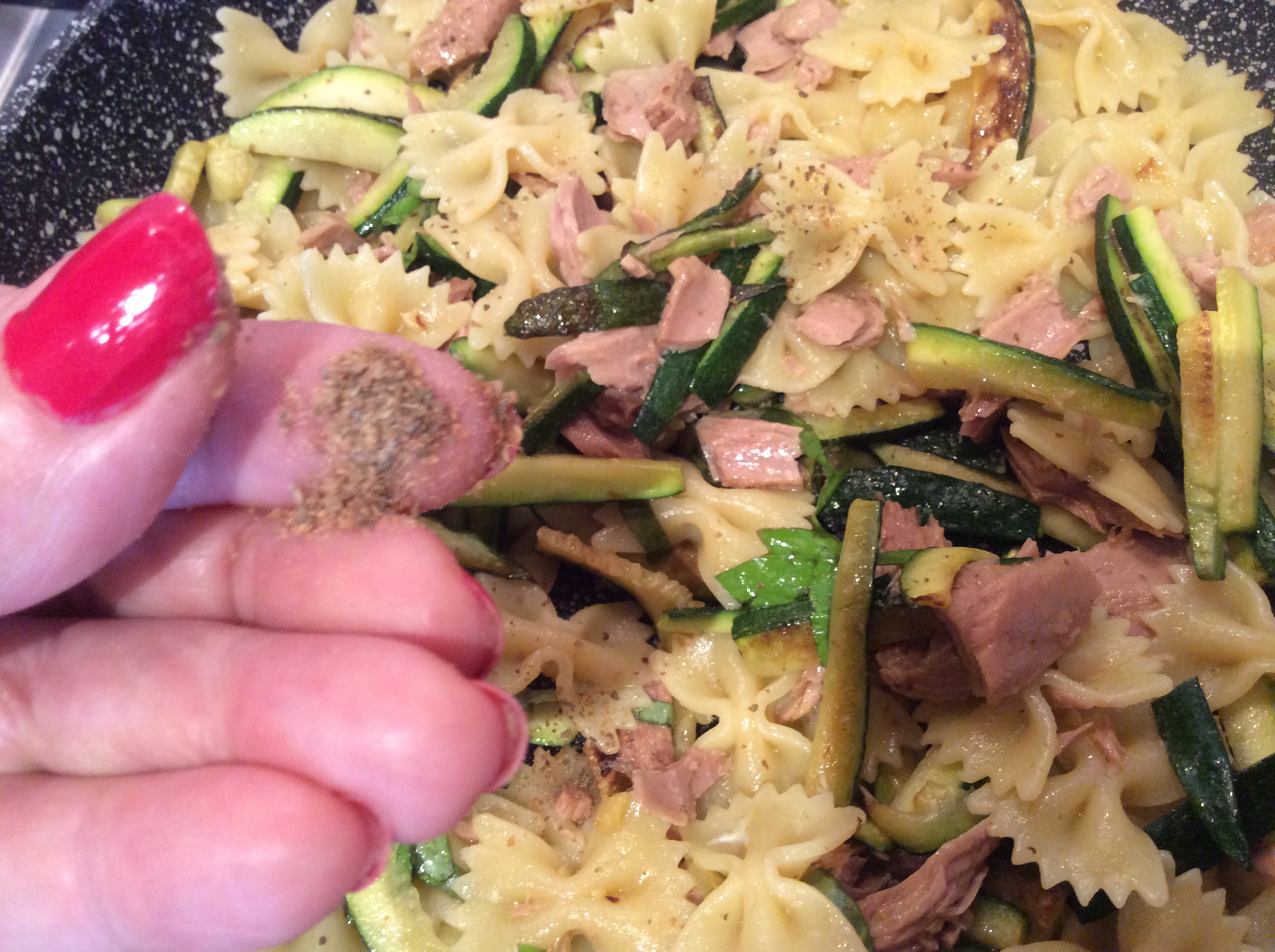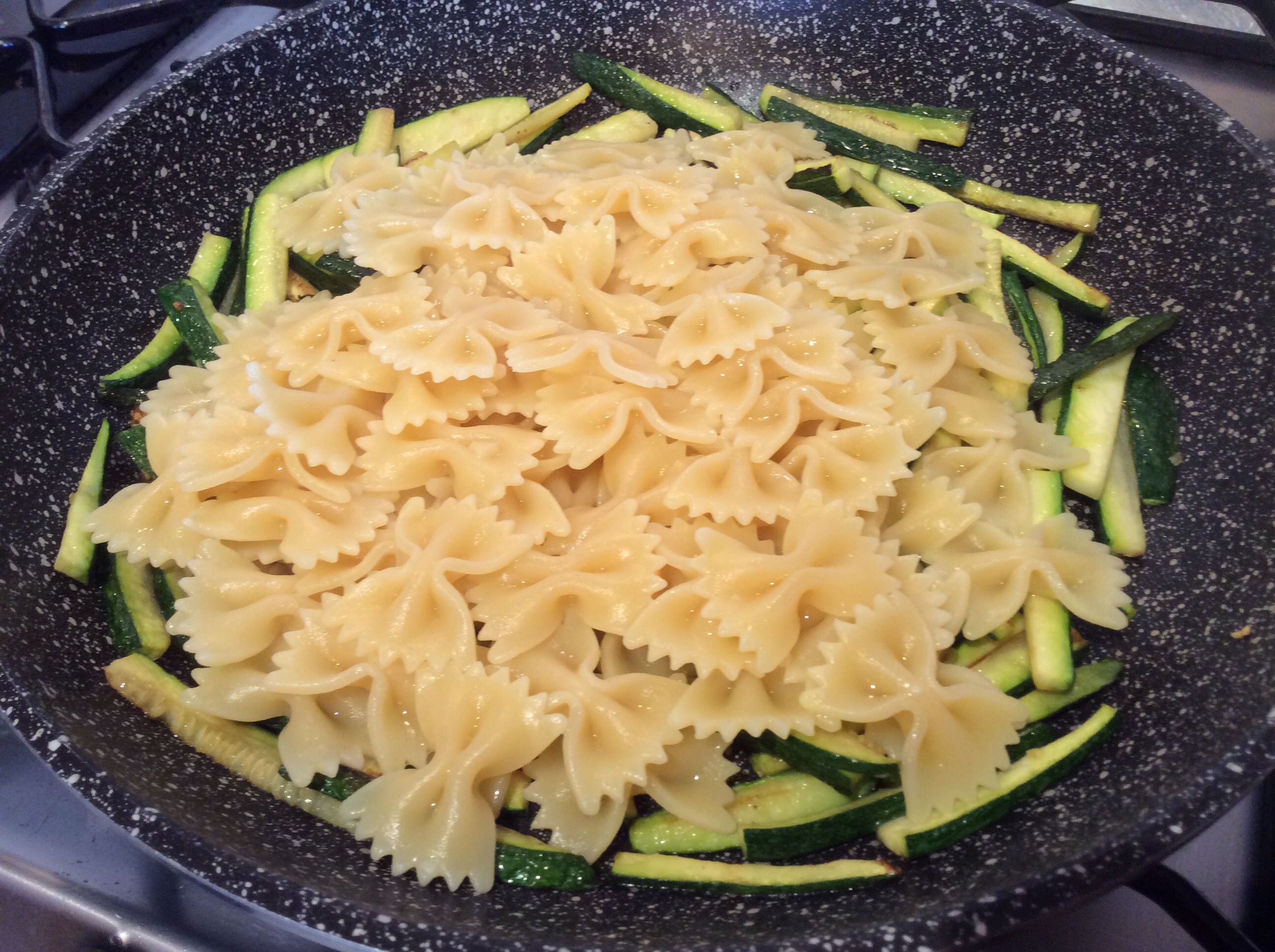 Quando le zucchine sono cotte ma croccanti spego il fuoco scolo la pasta e la aggiungo alle zucchine