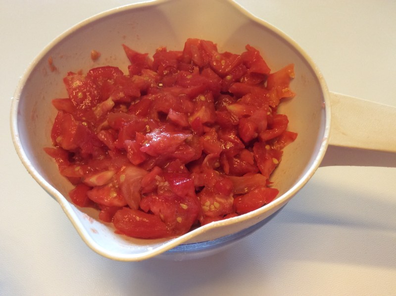 Con lo speciale spelucchino sbuccio i pomodori, oppure potete inciderli a croce in superficie, metterli per un minuto in acqua bollente, toglierli e trasferirli in una ciotola con acqua freddissima, la buccia si toglierà molto facilmente