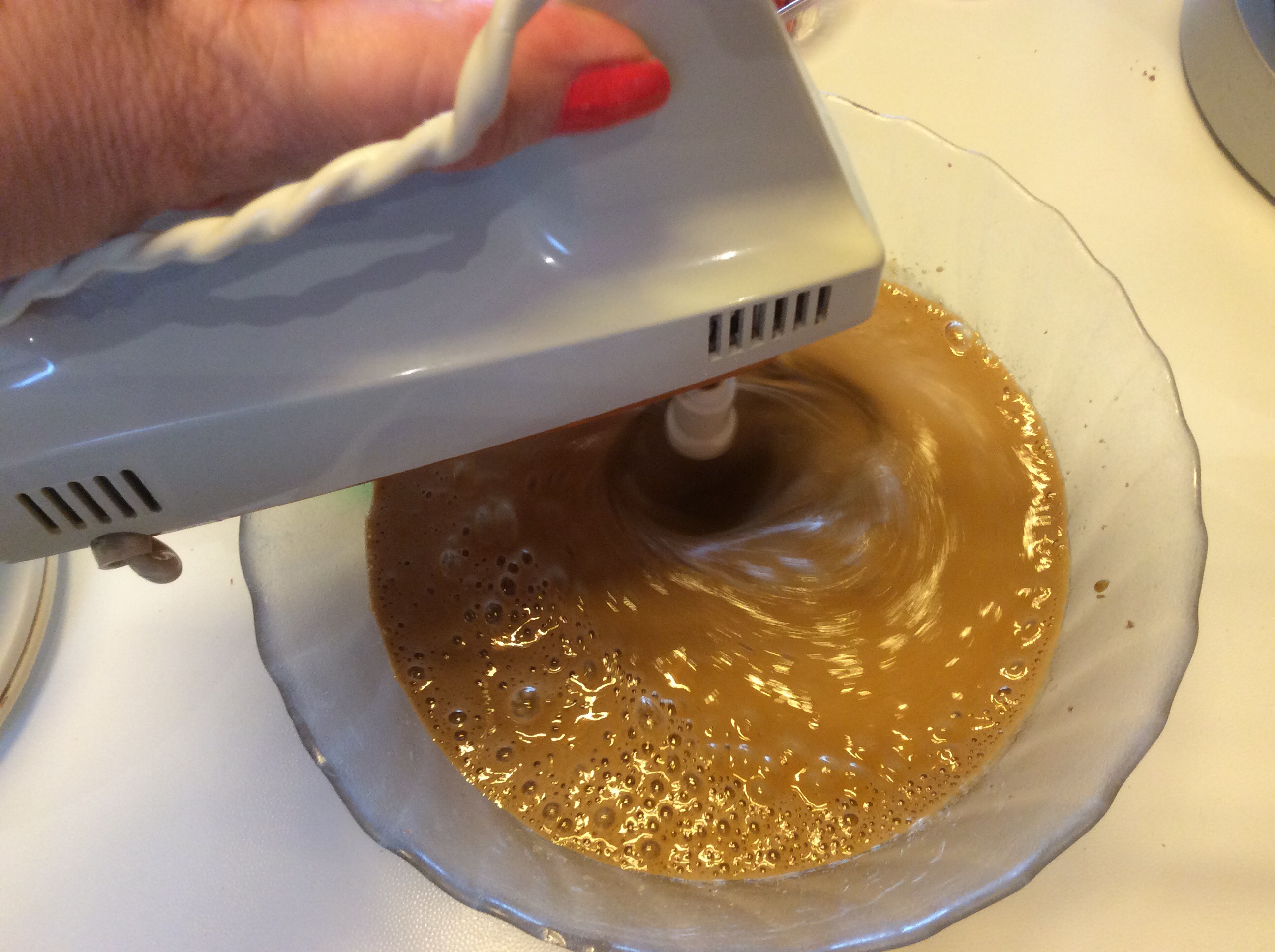 Quando il composto è ben montato aggiungo poco per volta il burro fuso freddo continuando a montare