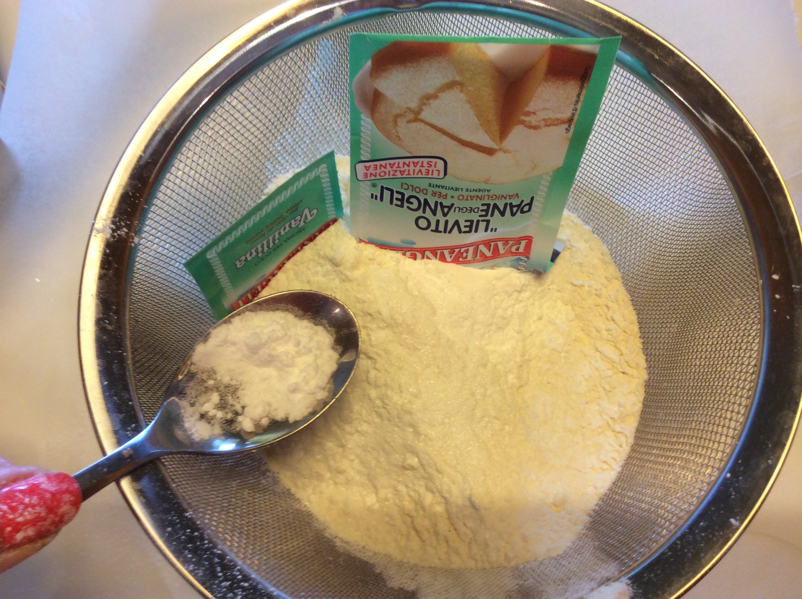 Setaccio la farina con il lievito e aggiungo la vanillina