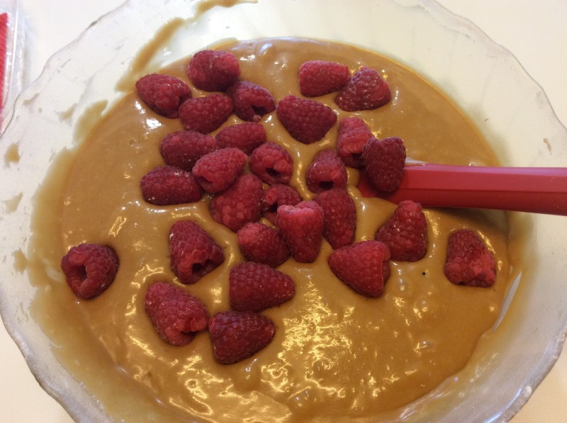 A questo punto aggiungo i lamponi mescolando delicatamente