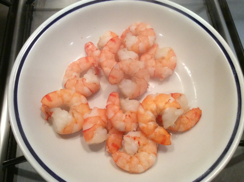 Lesso in acqua leggermente salata le code dei gamberi dopo averle pulite, tolto il carapace e il budellino intestinale, le lascio raffreddare