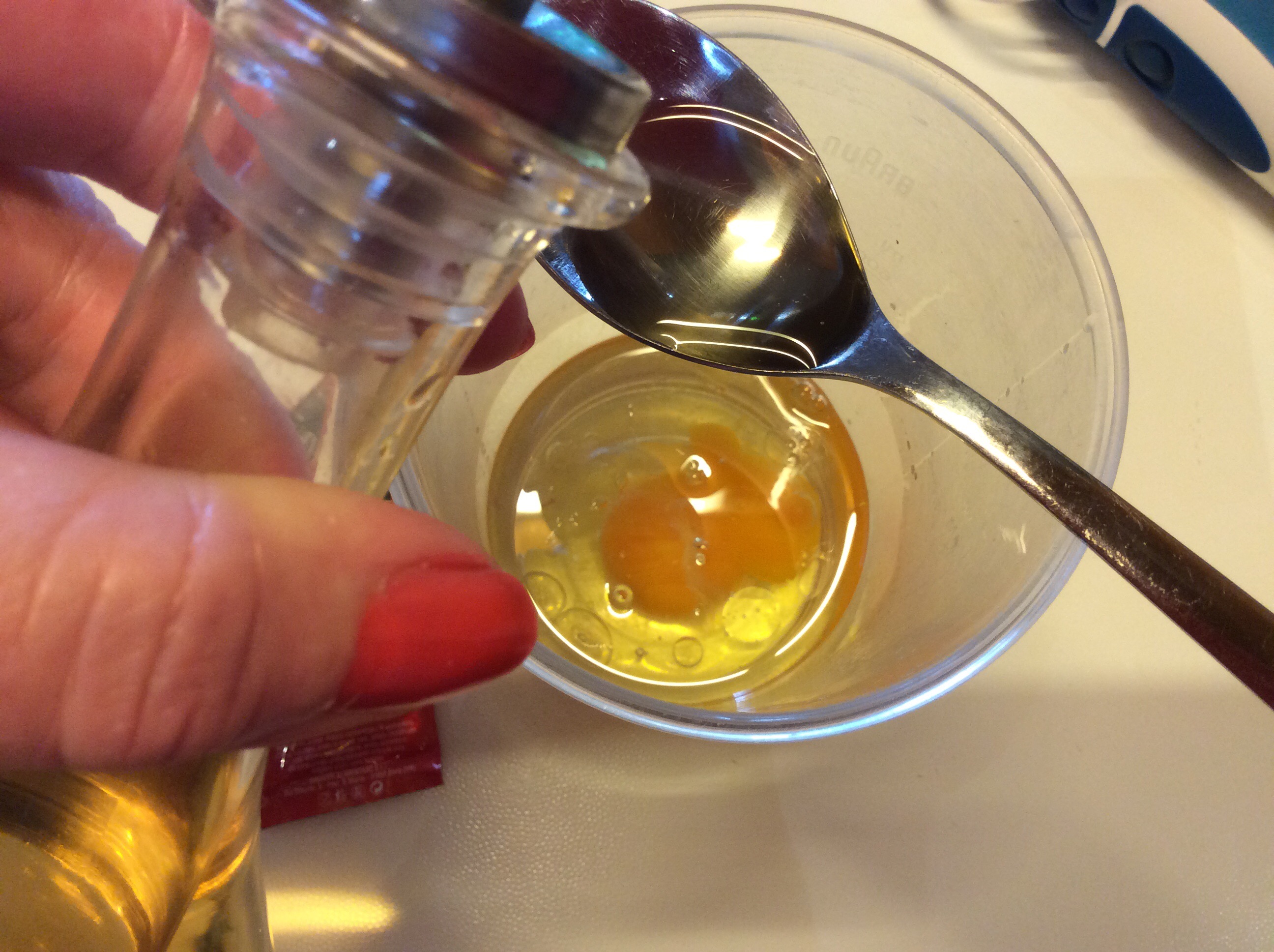 Verso nel bicchiere del mixer l’uovo intero a temperatura ambiente