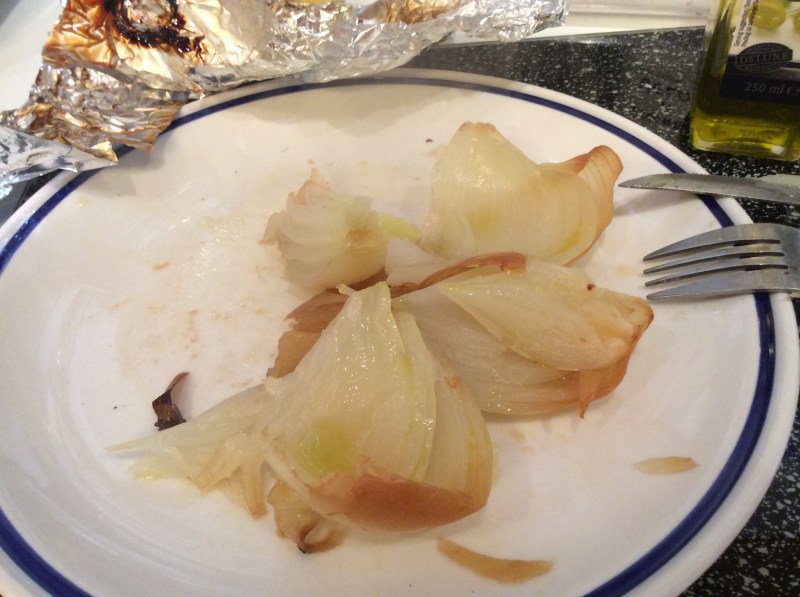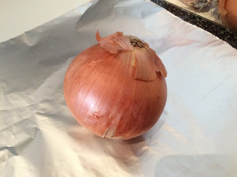 Taglio dei fogli di carta alluminio e appoggio ogni singola cipolla