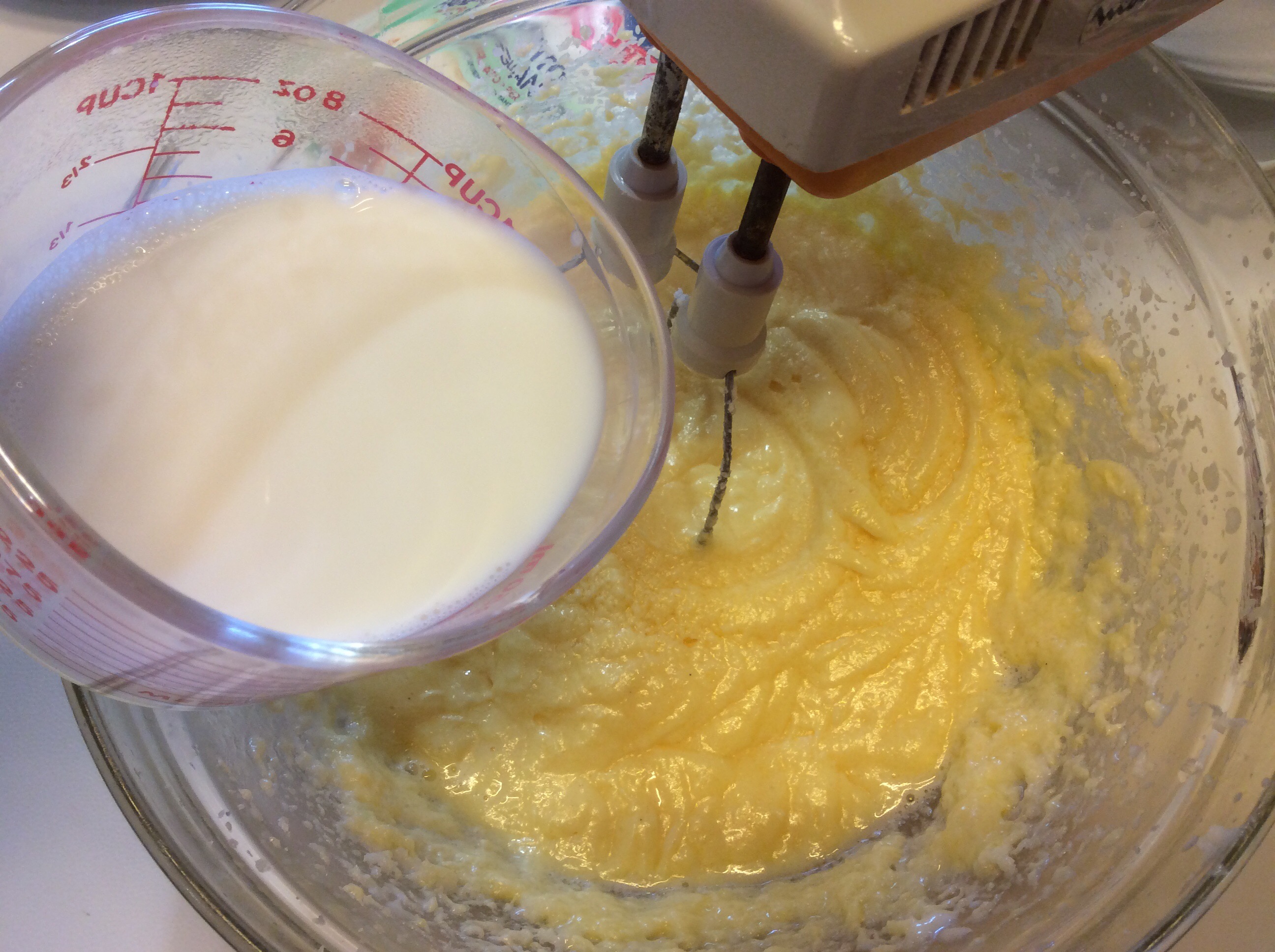 Aggiungo poco per volta il latte che ho fatto intiepidire e monto a bassa velocità