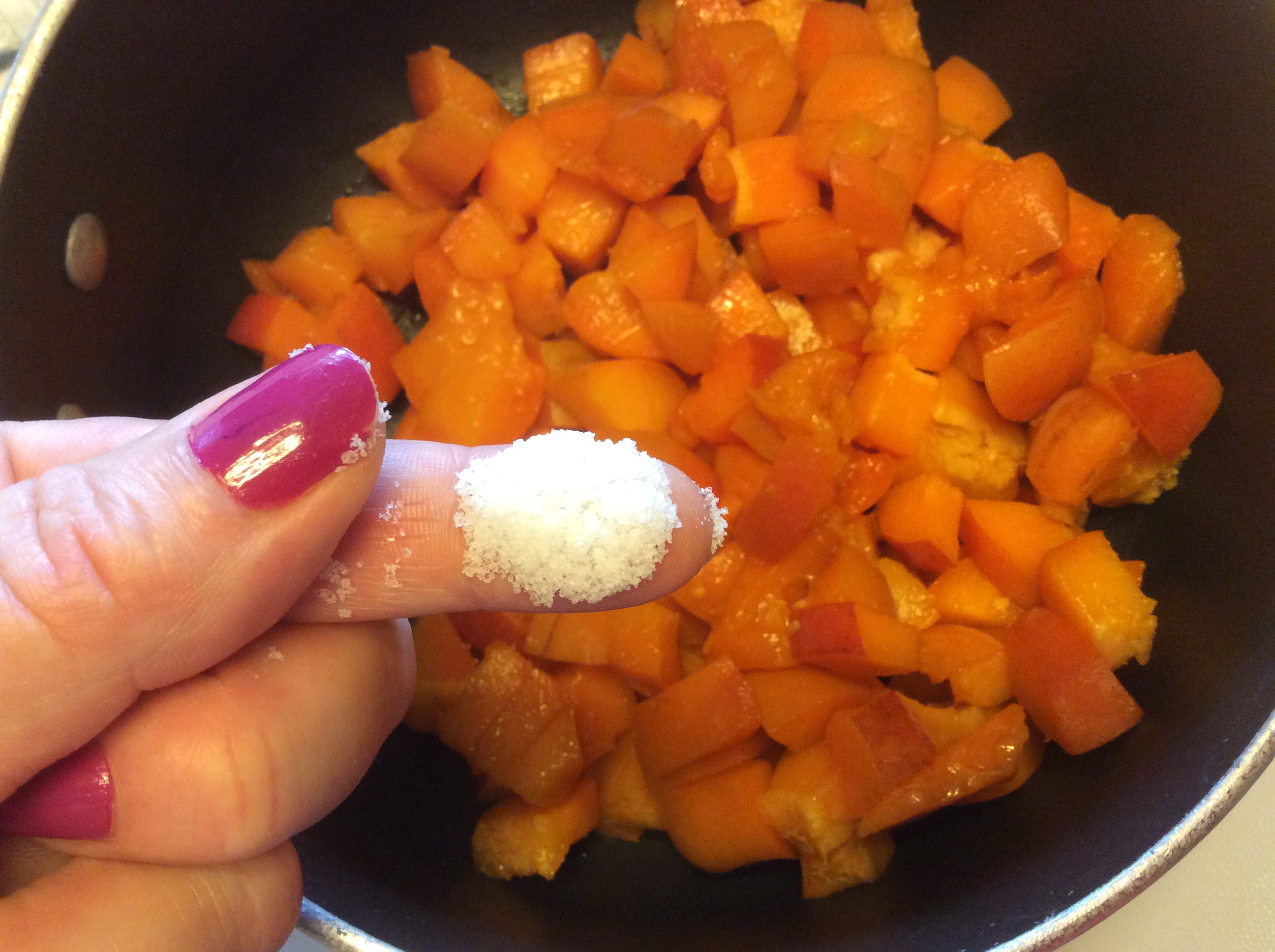 Lavo molto bene le albicocche e le taglio a pezzetti