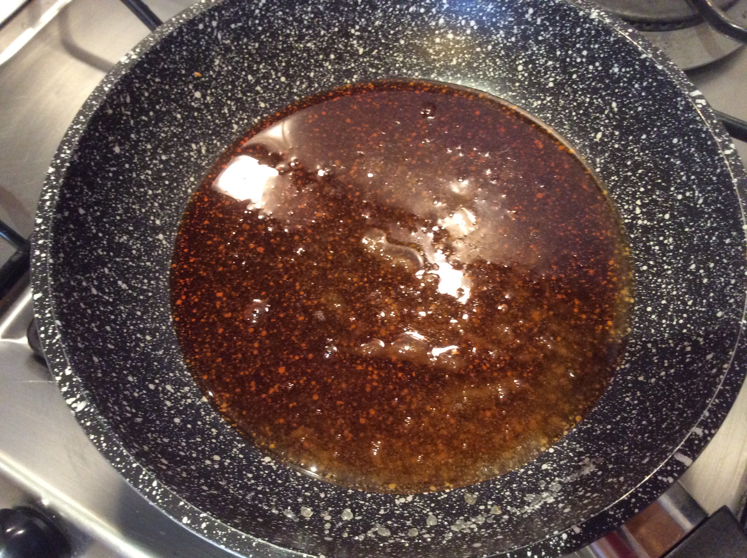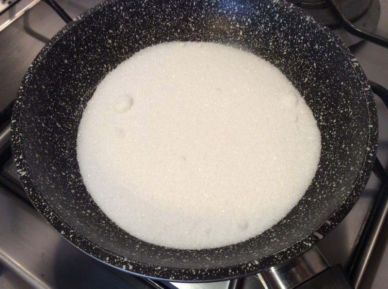 Lo lascio caramellare finché assume un colore ambrato senza mescolarlo solo muovendo il pentolino