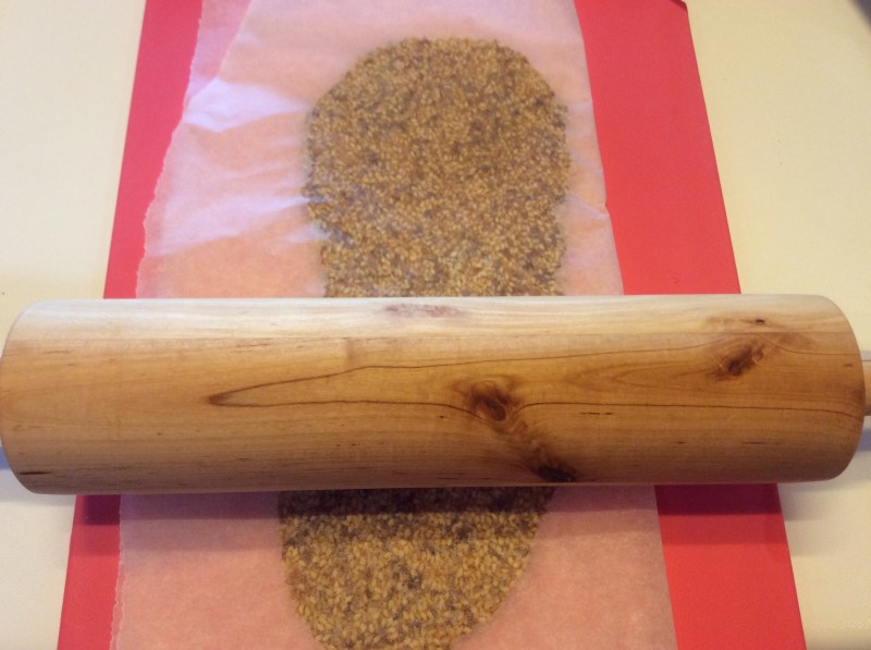 Copro con un secondo foglio di carta e lo appiattisco con il matterello tirandolo dello spessore di pochi mm