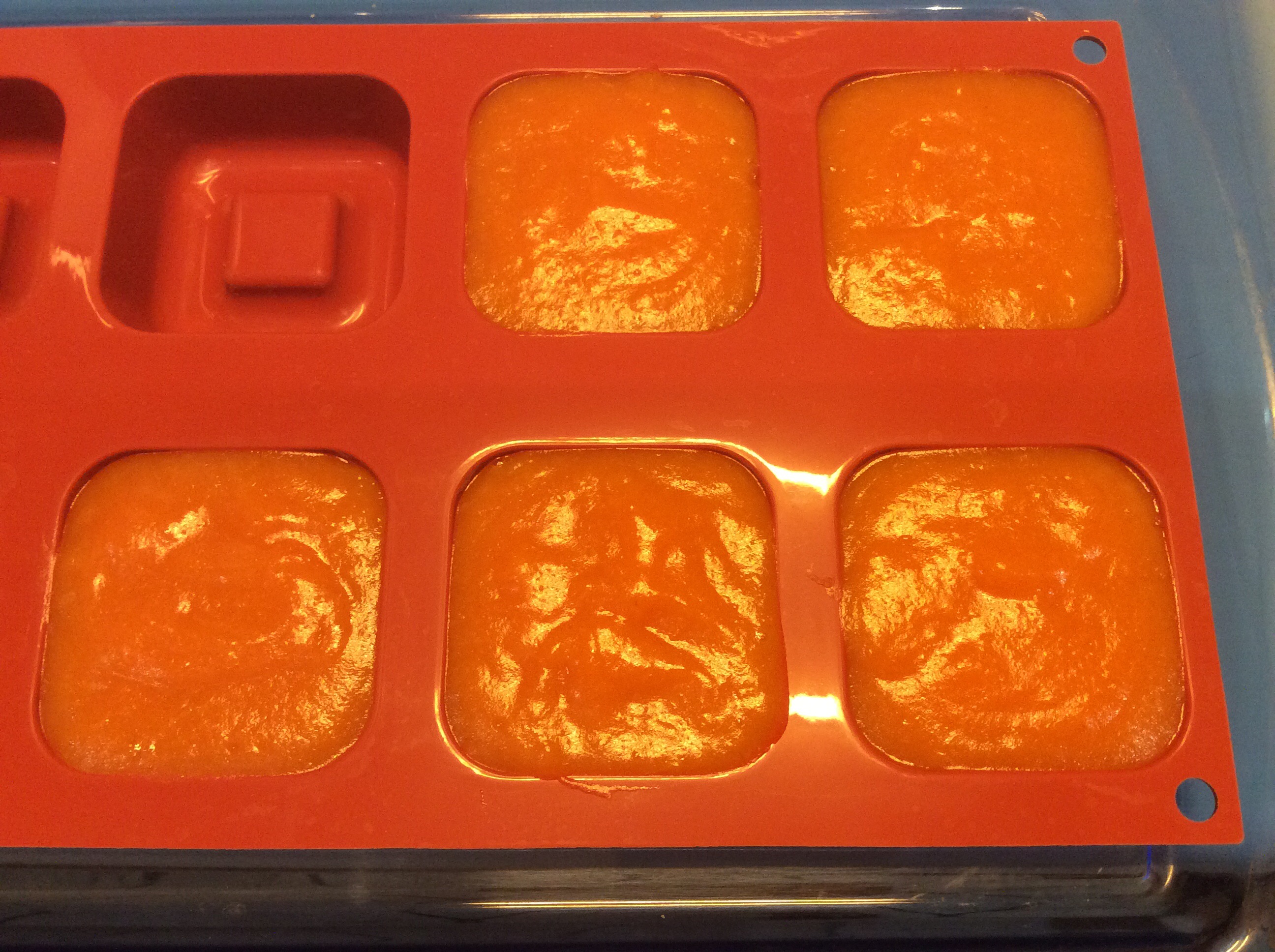 La distribuisco negli stampini, io ho adoperato quelli in silicone e quando rapprende si sforma benissimo, lascio raffreddare e poi ripongo in frigorifero