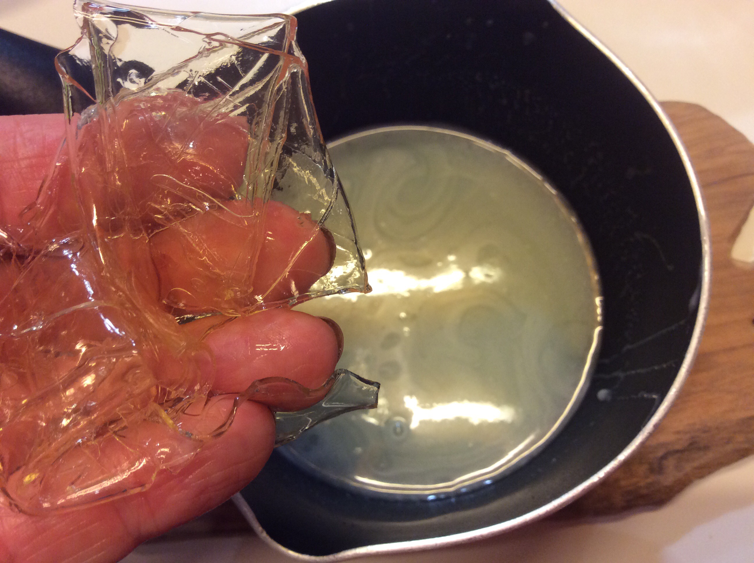 Aggiungo la colla di pesce (che avevo precedentemente ammollato per 10 minuti in acqua fredda) dopo averla ben strizzata