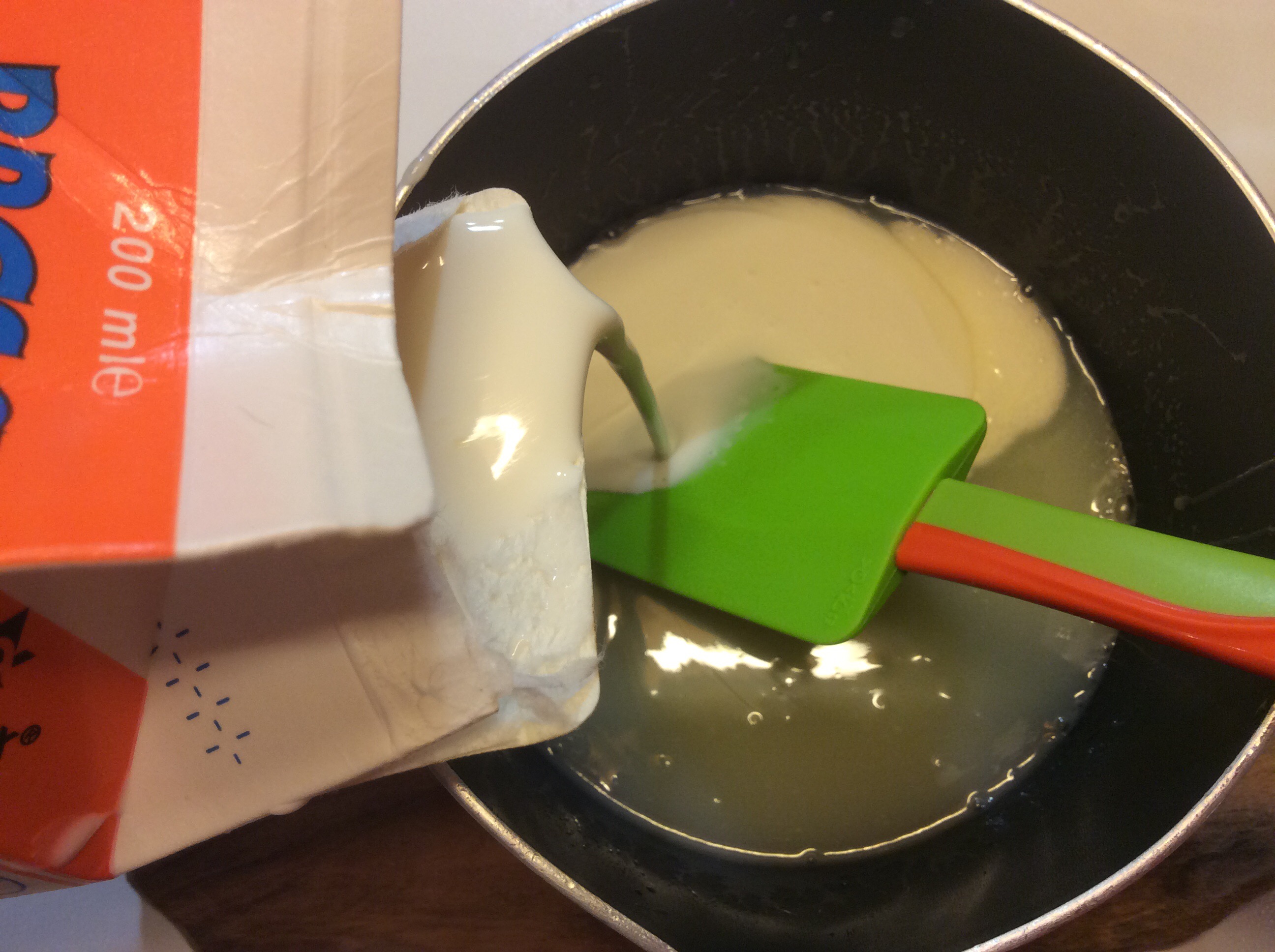 Mescolo bene finchè è sciolta, aggiungo la restante panna sempre mescolando