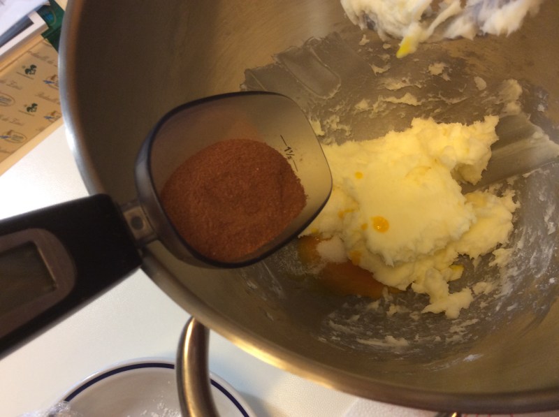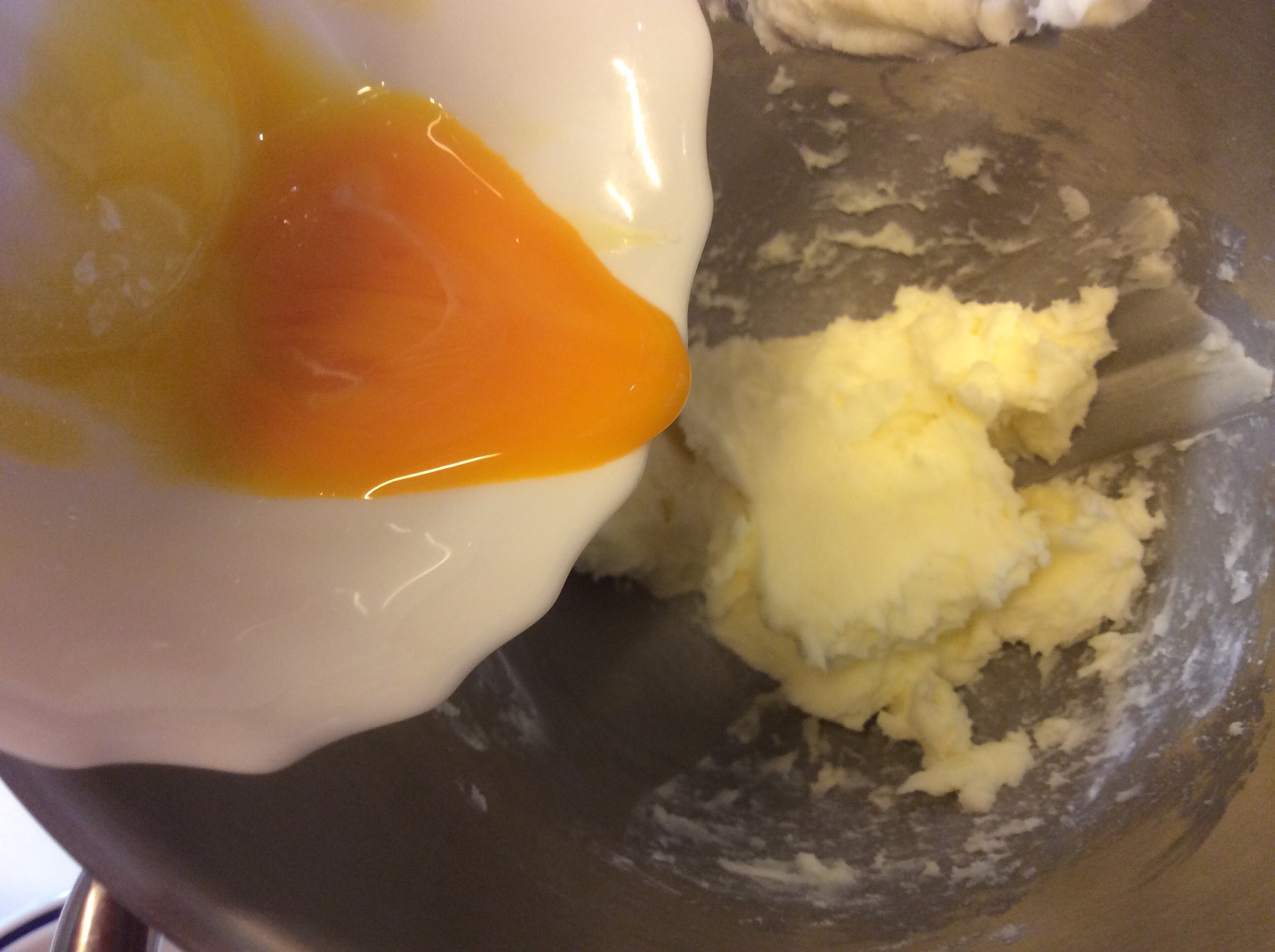 Nella planetaria monto il burro morbido con lo zucchero, quindi aggiungo il tuorlo, è veramente poco ma la dose è esatta