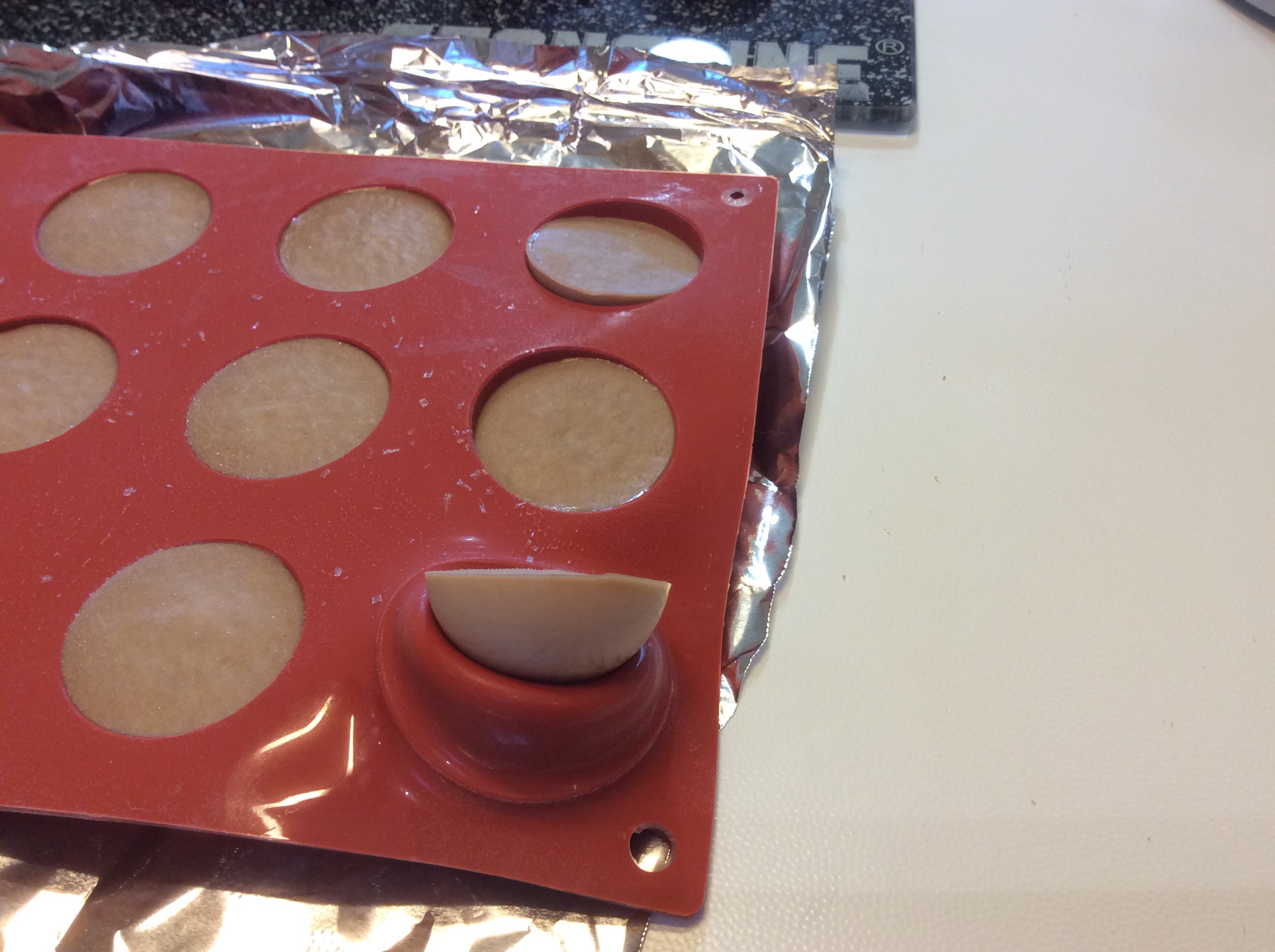 Lo verso nello stampo in silicone a semisfera o la forma che desiderate e lo lascio raffreddare completamente quindi lo ripongo nel frezzer