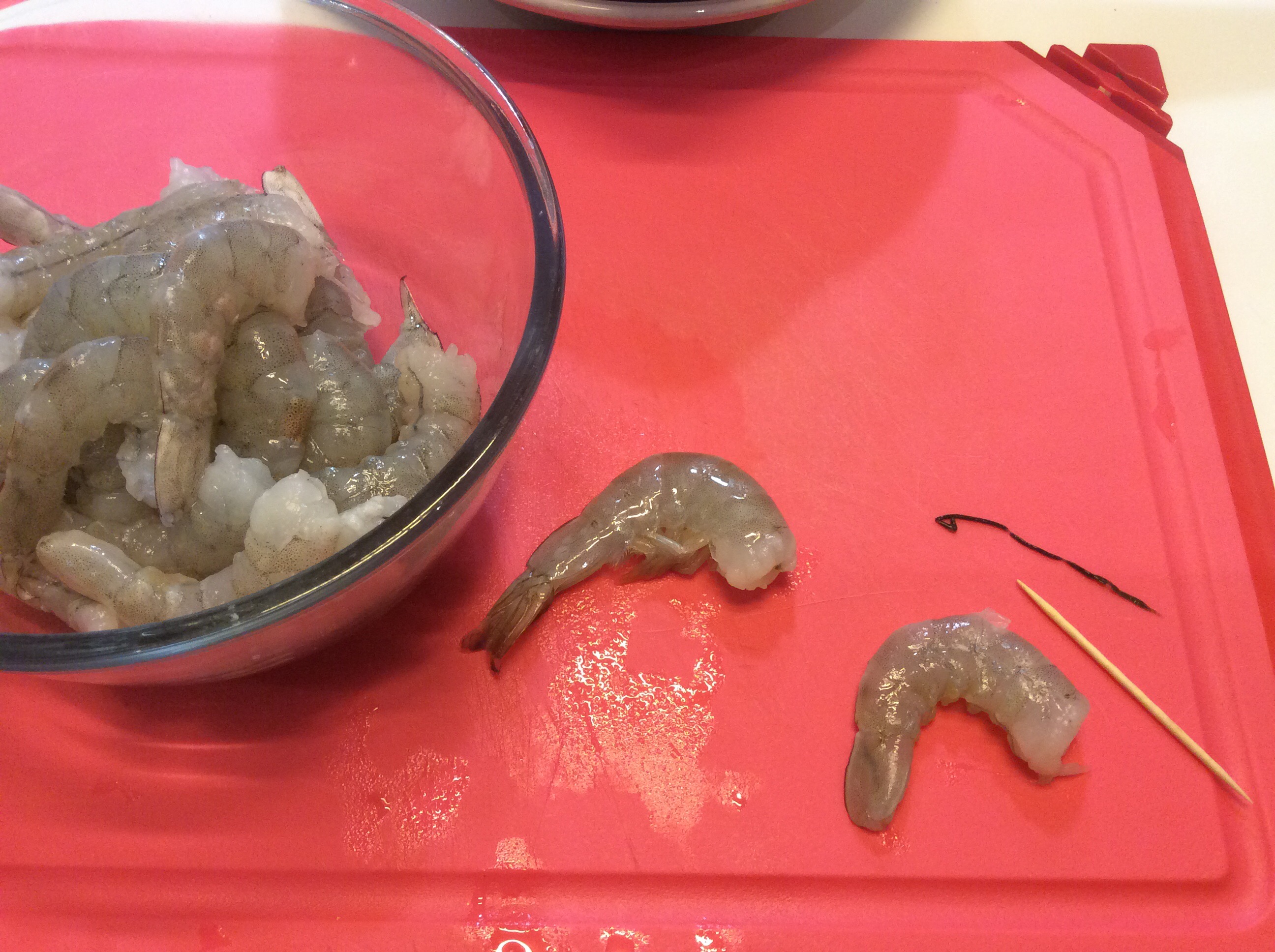 Pulisco le code sgusciandole e togliendole il budellino
