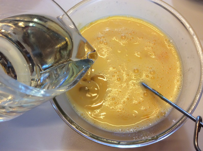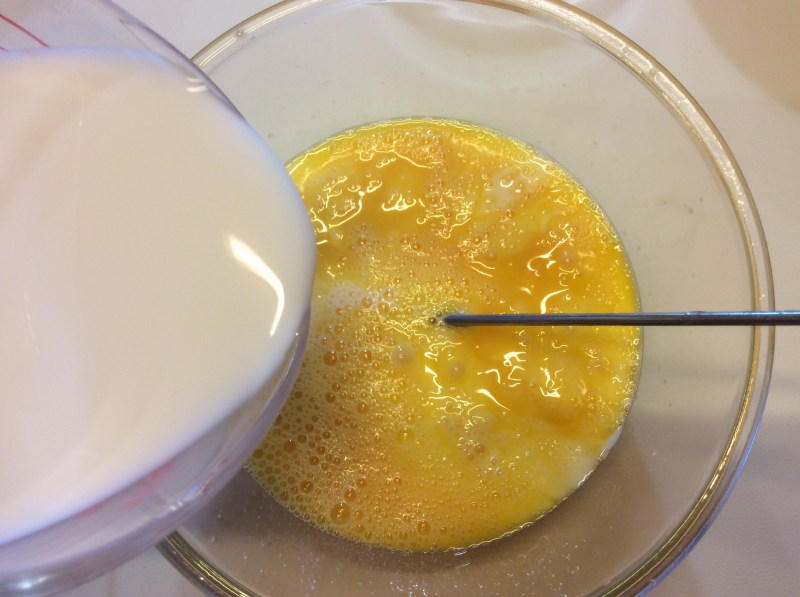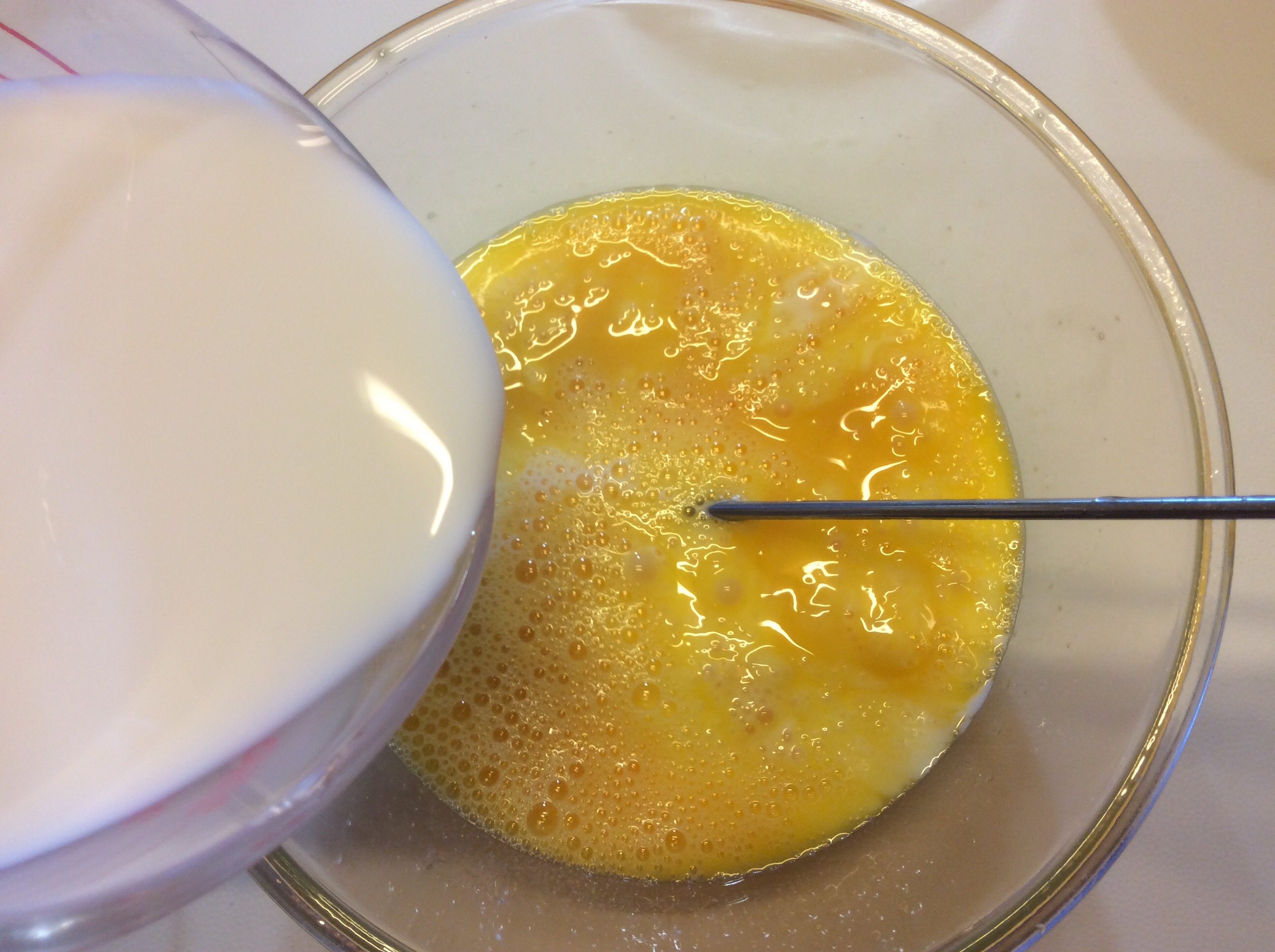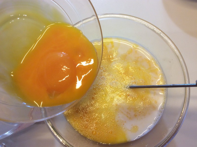 In una ciotola batto leggermente le uova intere e aggiungo il latte