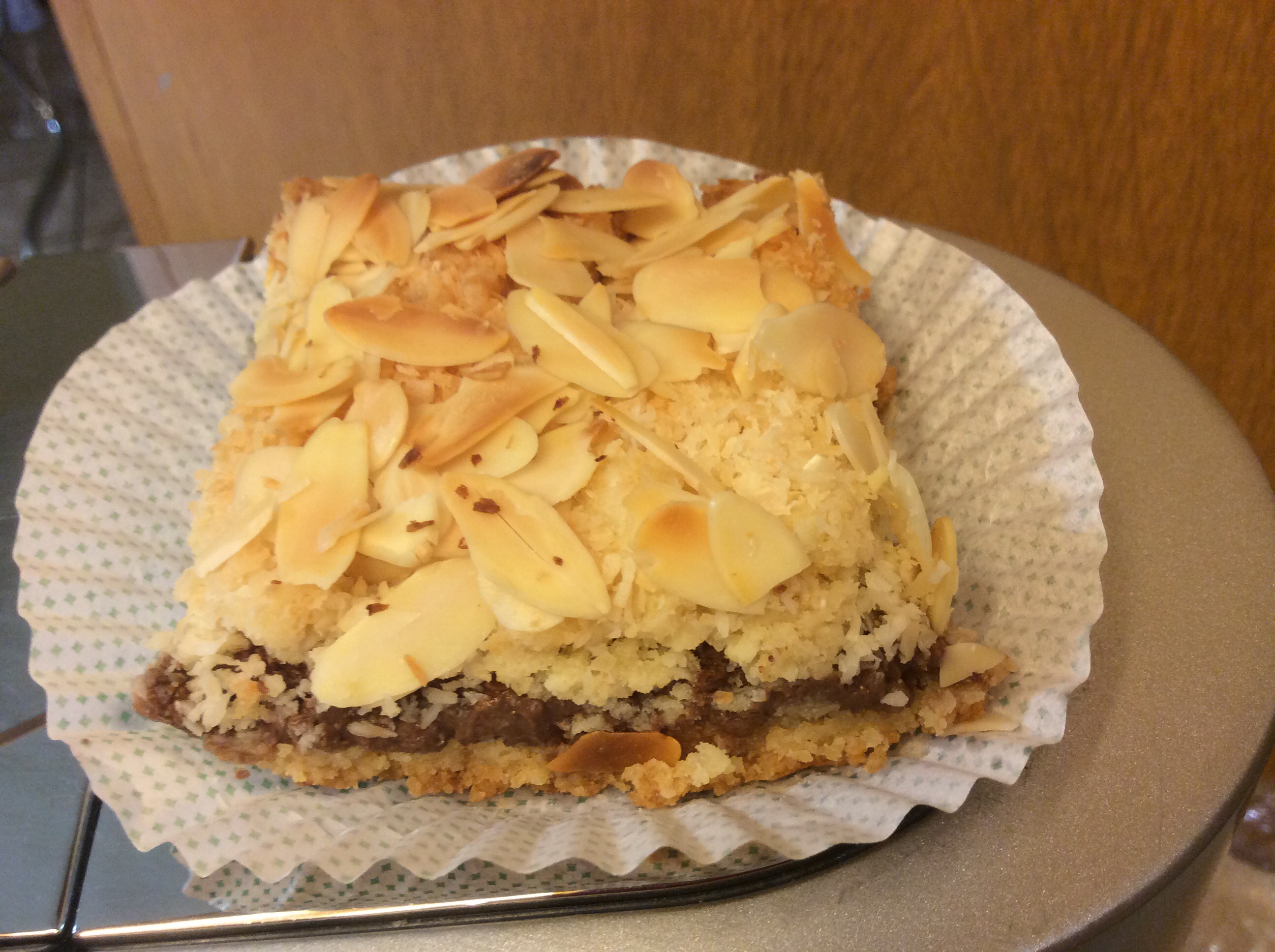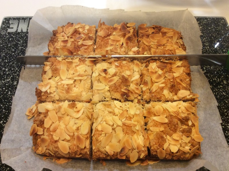 Quando è fredda la tolgo dalla teglia e la taglio e quadrotti io ho fatto 9 quadrotti piuttosto grandi, a voi decidere se farli più piccoli