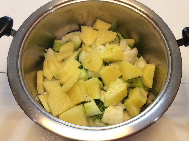 Taglio tutte le verdure a piccoli pezzi e le metto in una pentola