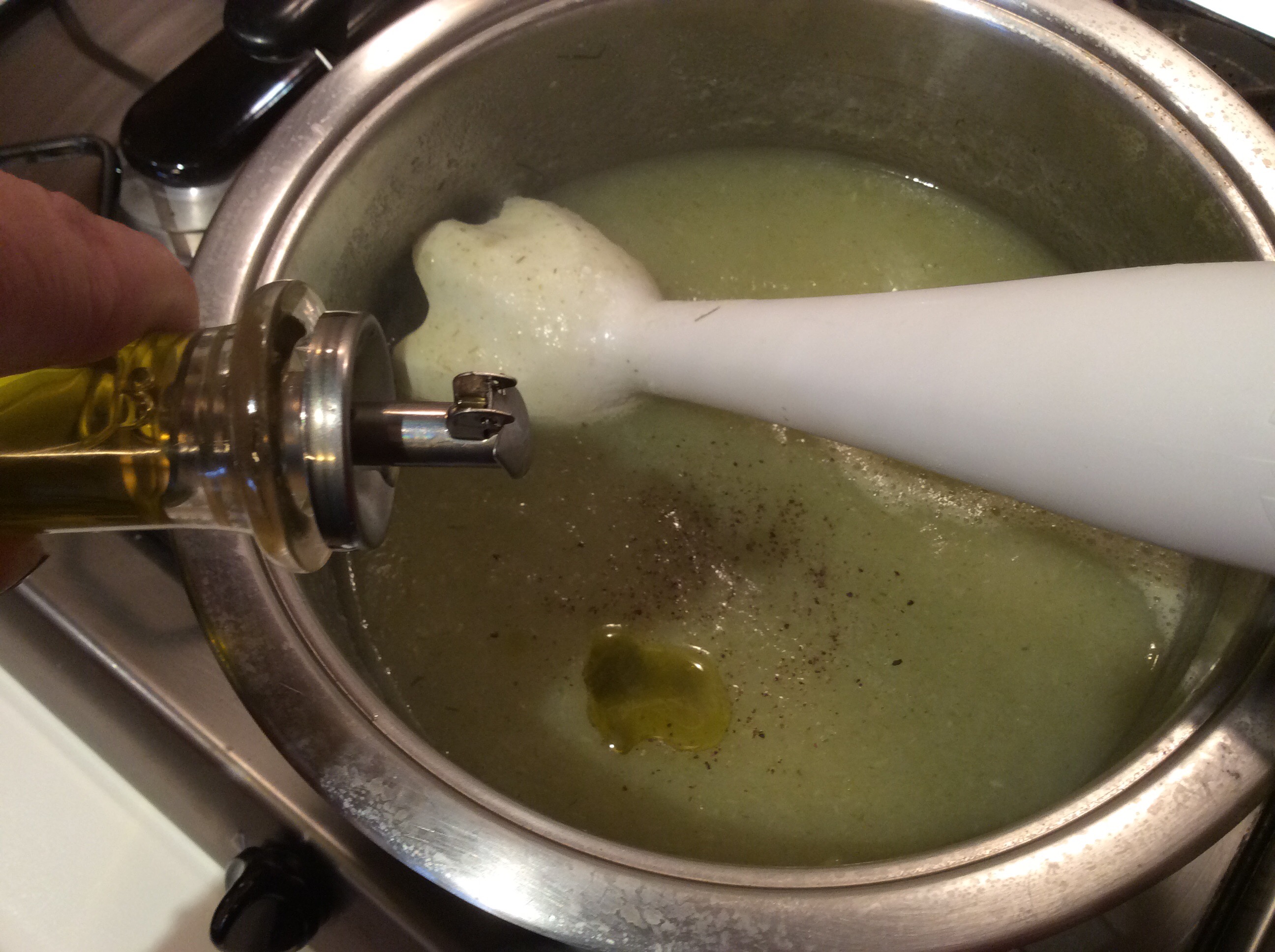 Quindi frullo con un mixer ad immersione aggiungendo a filo dell’olio extravergine