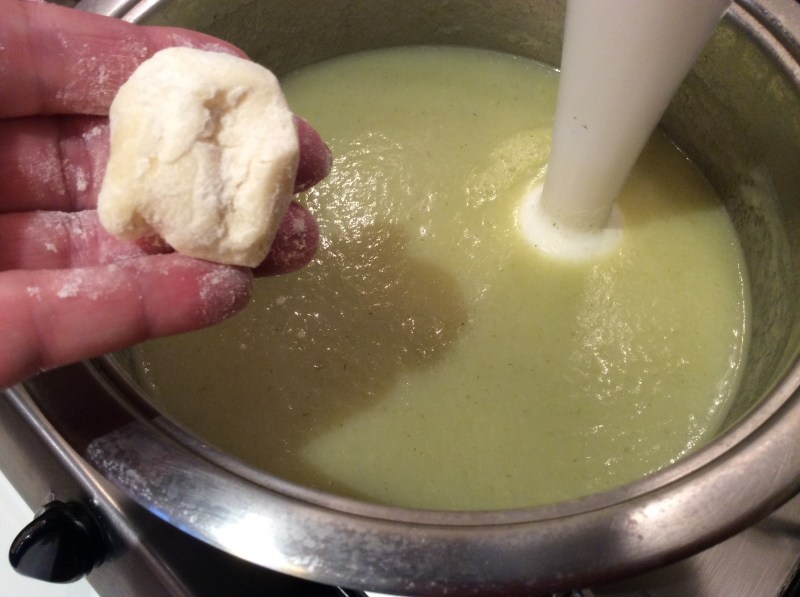Per addensarla leggermente lavoro una noce di burro con un cucchiaio di farina, quando è ben amalgamato lo aggiungo alla crema sempre frullando