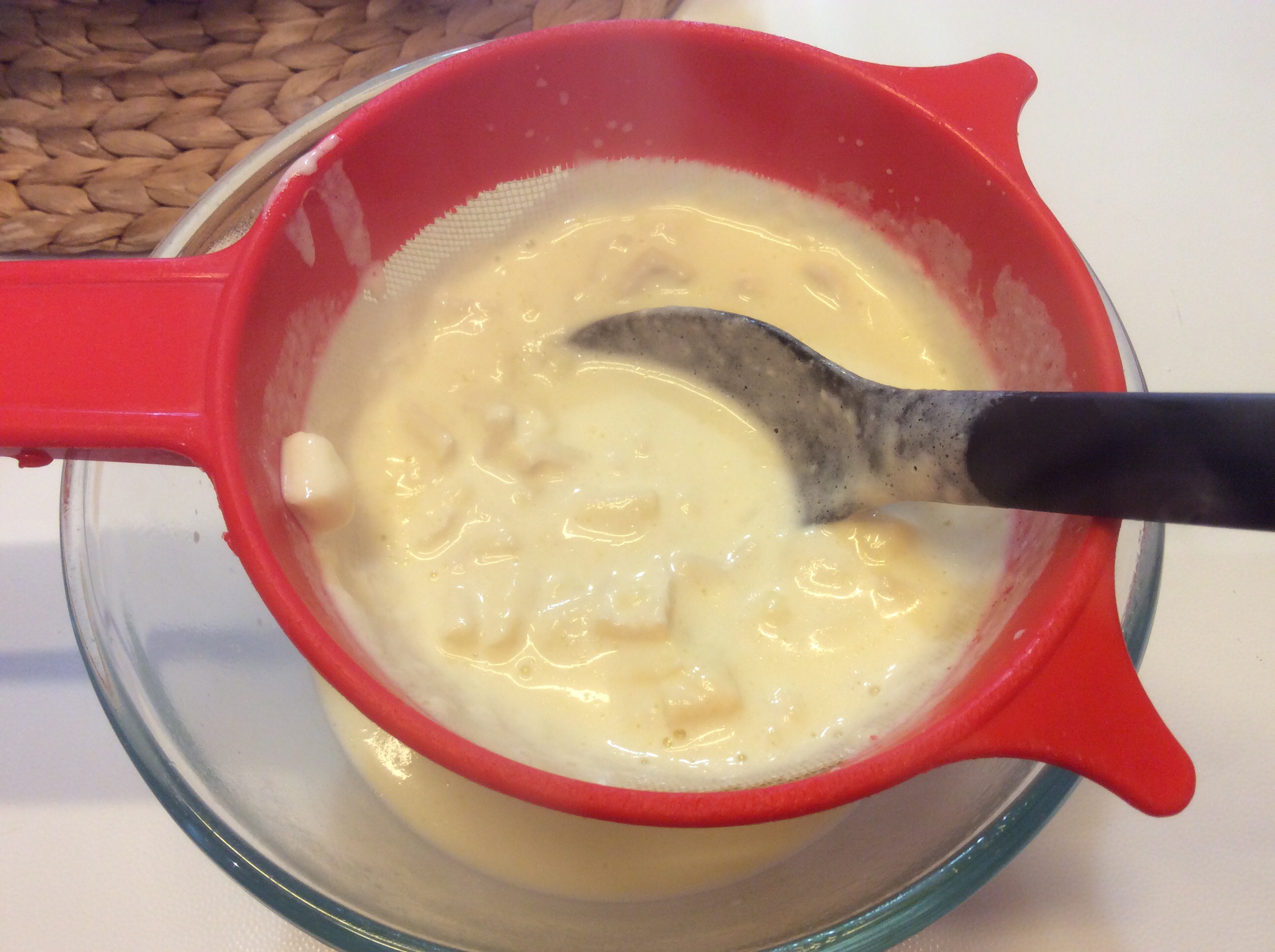 Il giorno dopo lo sciolgo a microonde o in un pentolino meglio a bagnomaria poi lo filtro in un colino