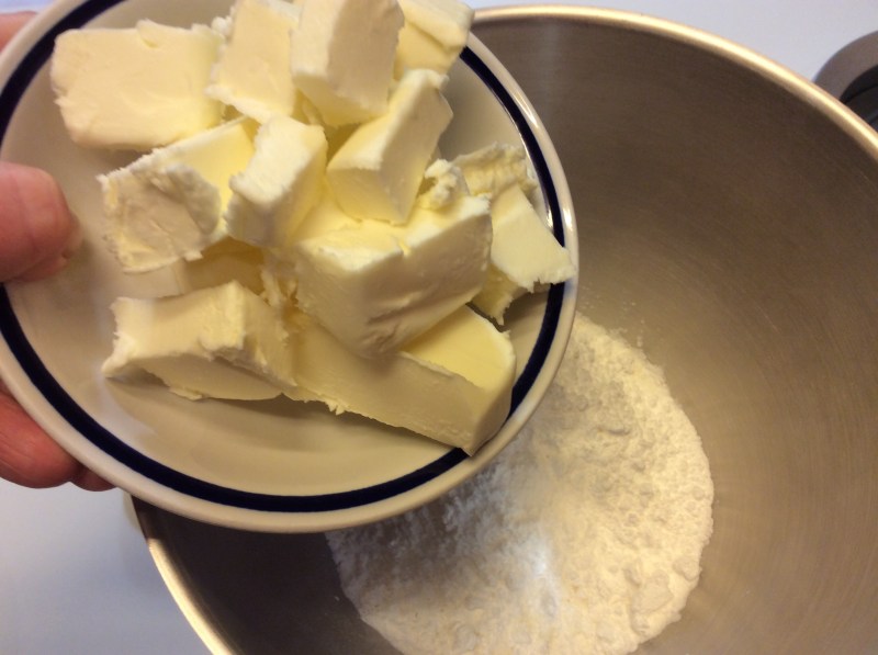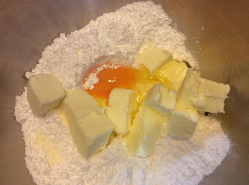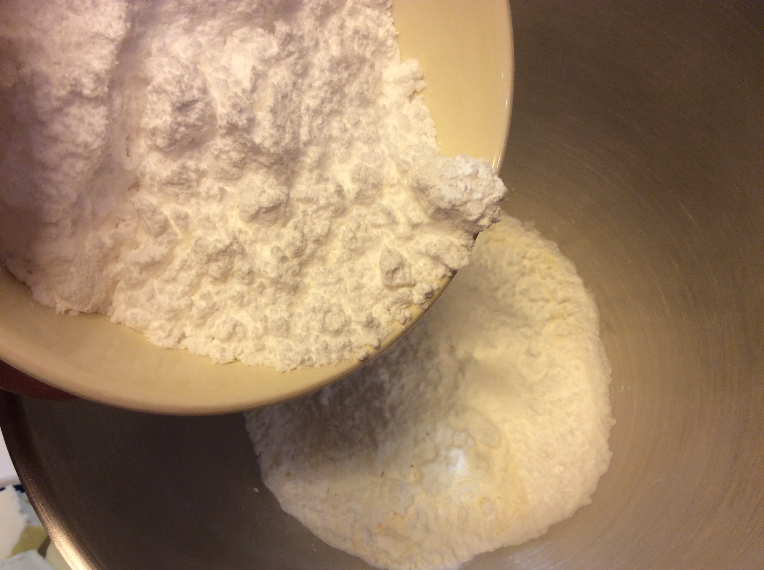 Nel cestello della planetaria o a mano verso la farina, lo zucchero a velo dopo averli setacciati