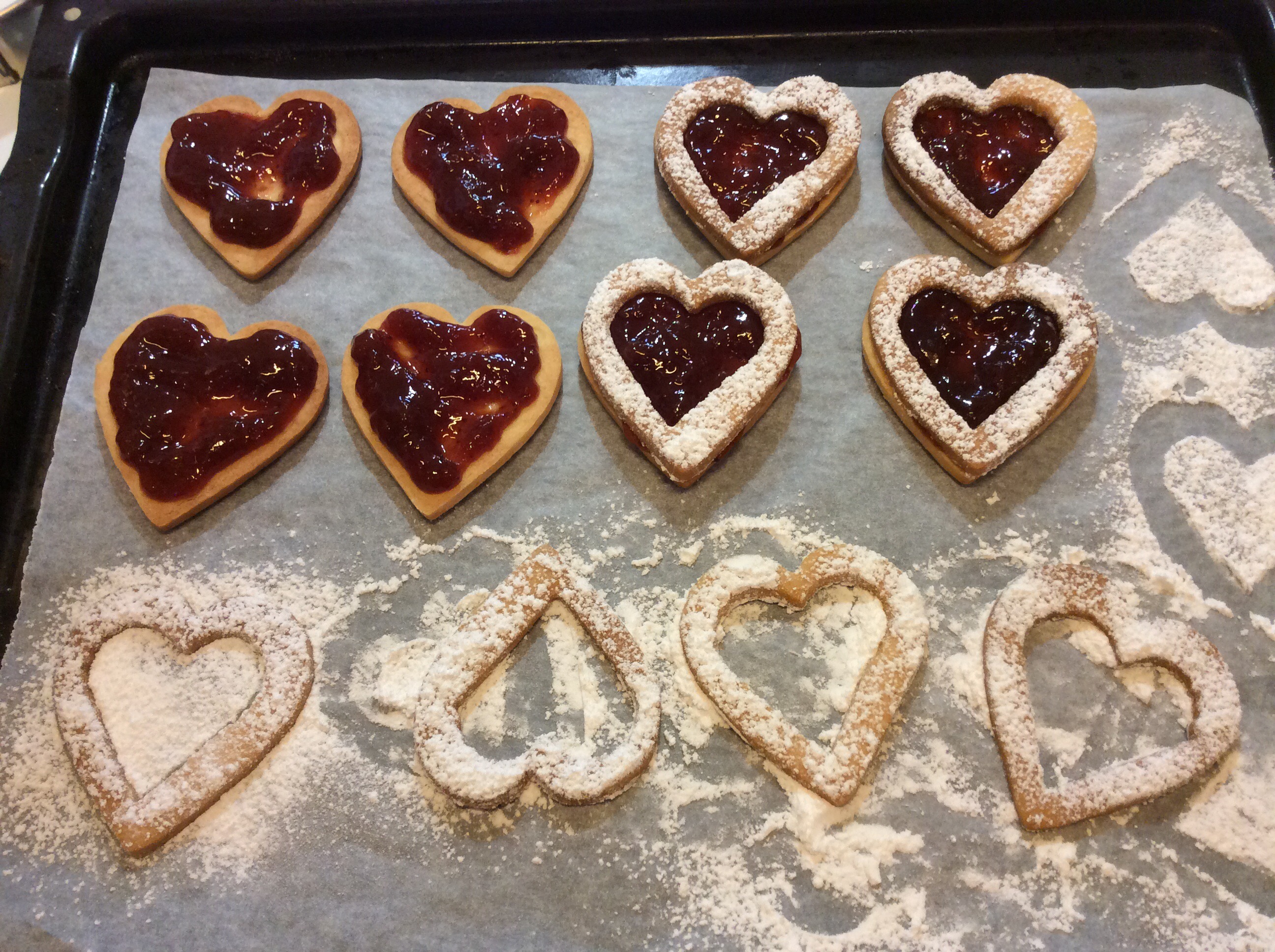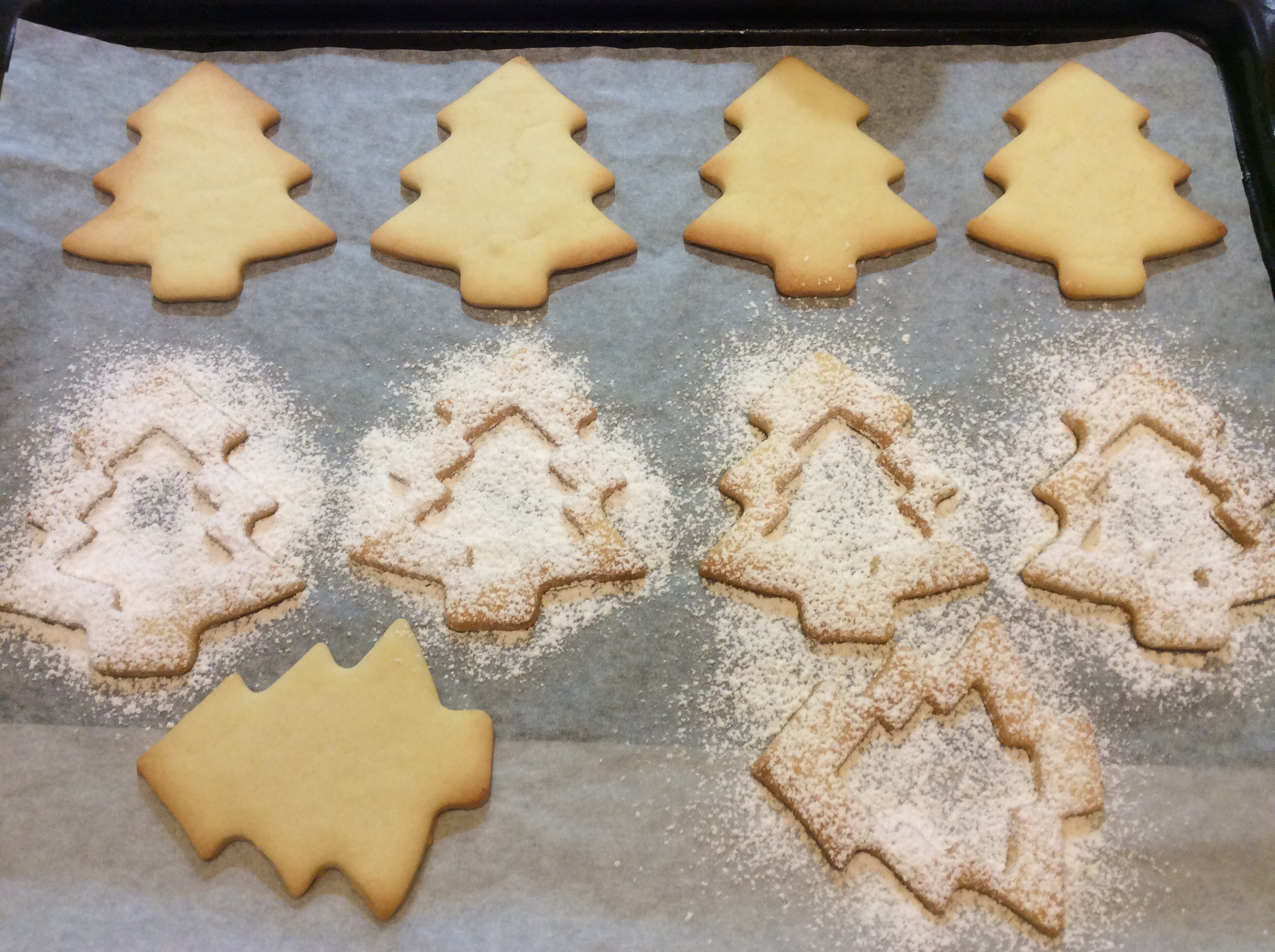 Quando sono cotti li lascio raffreddare, spolverizzo quelli vuoti con lo zucchero a velo