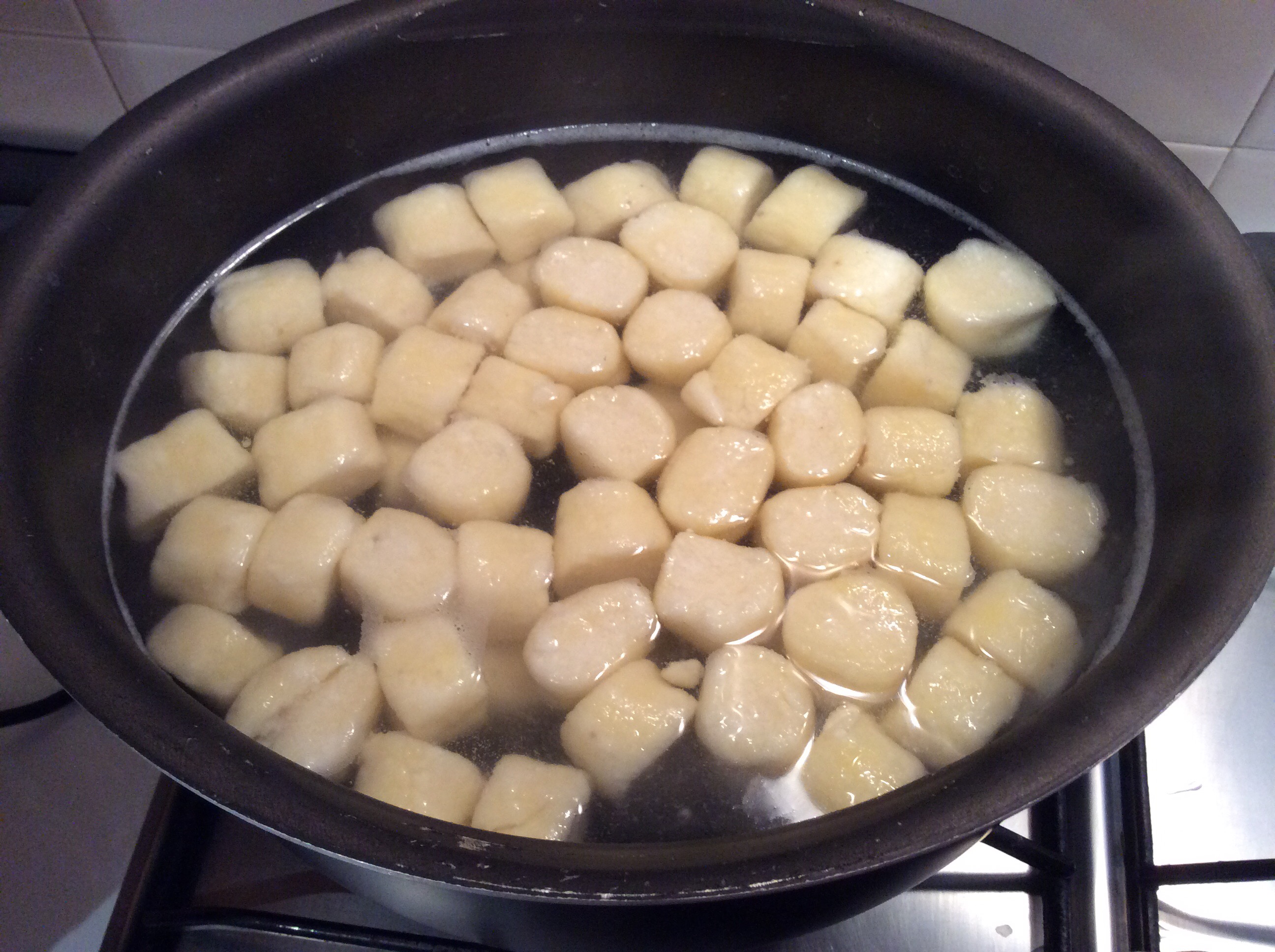 In acqua salata lesso gli gnocchi finchè vengono a galla