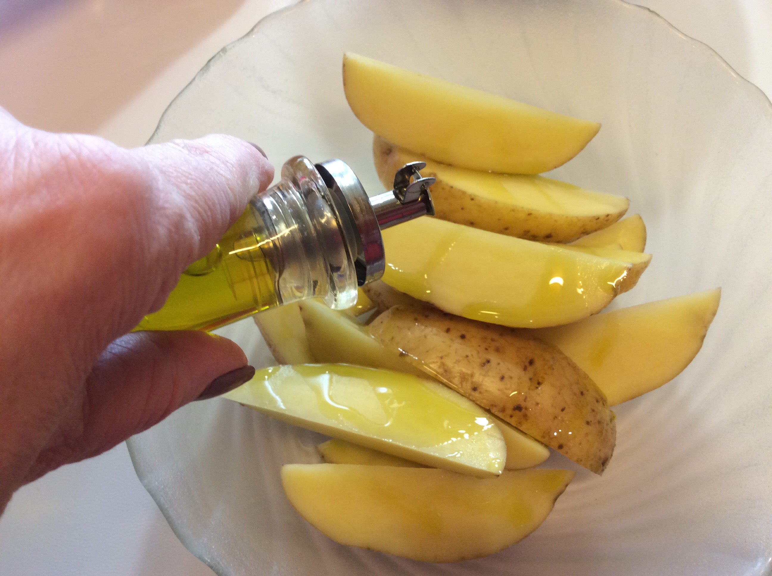 Le metto in una ciotola e verso dell’olio in modo da ungerle uniformemente