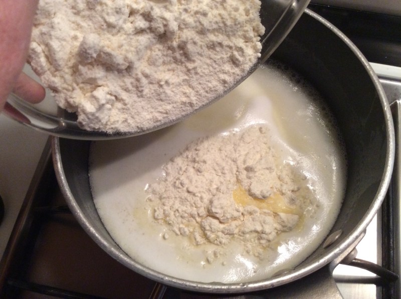 Porto a bollore quindi verso tutta la farina in un colpo solo, si evitano i grumi