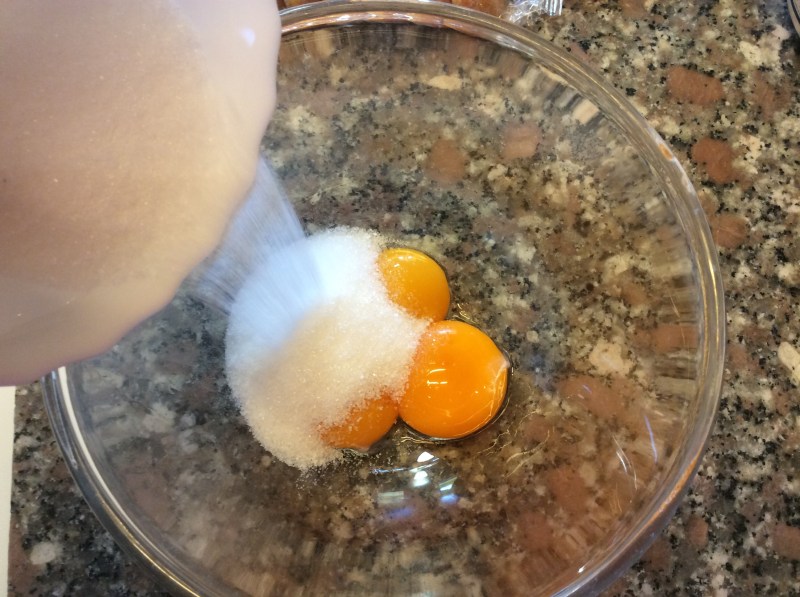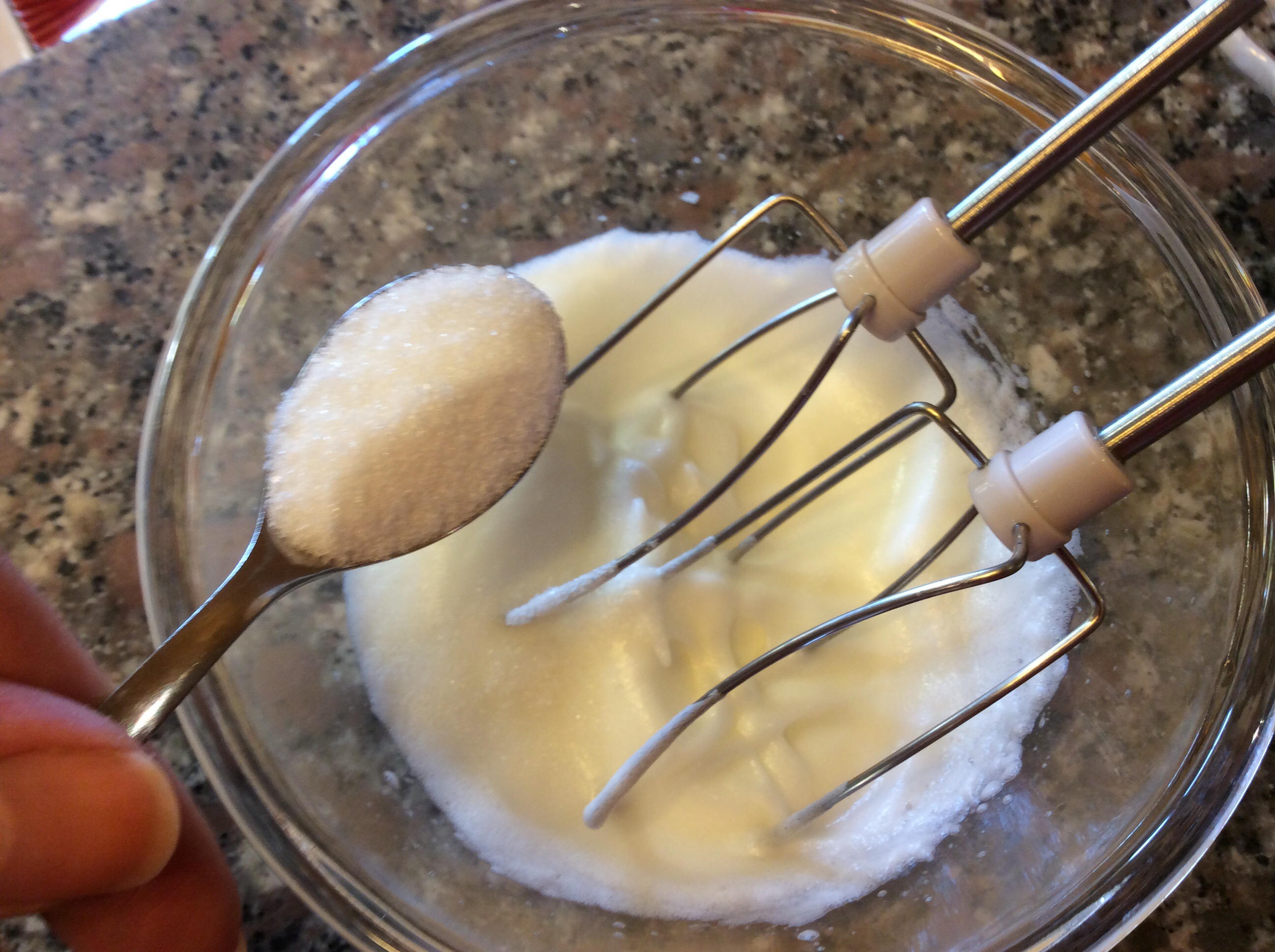 Monto gli albumi a neve con 1 cucchiaio di zucchero della dose