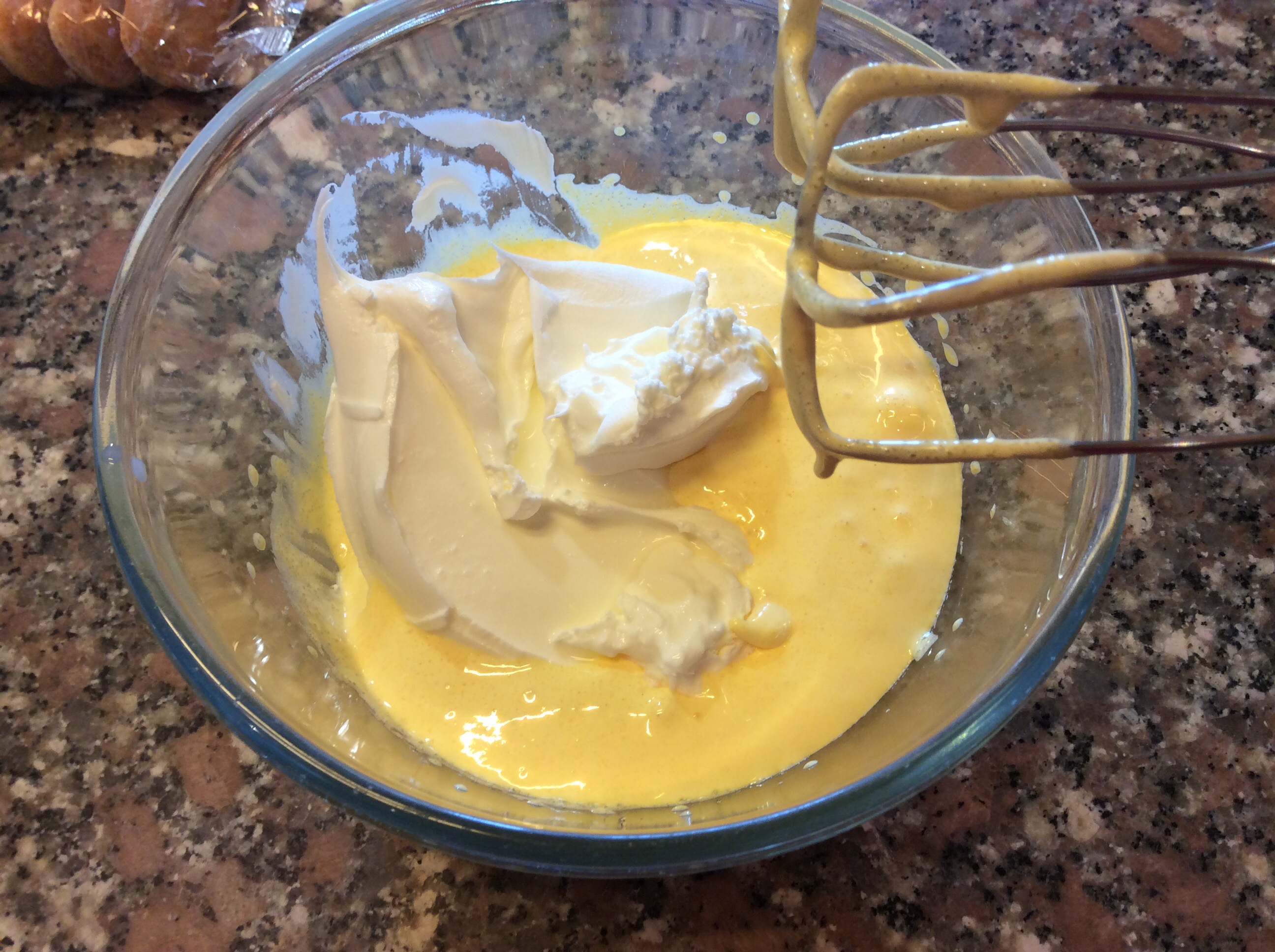 Li monto con le fruste elettriche finchè sono gonfi e spumosi quindi aggiungo il mascarpone continuando a montare