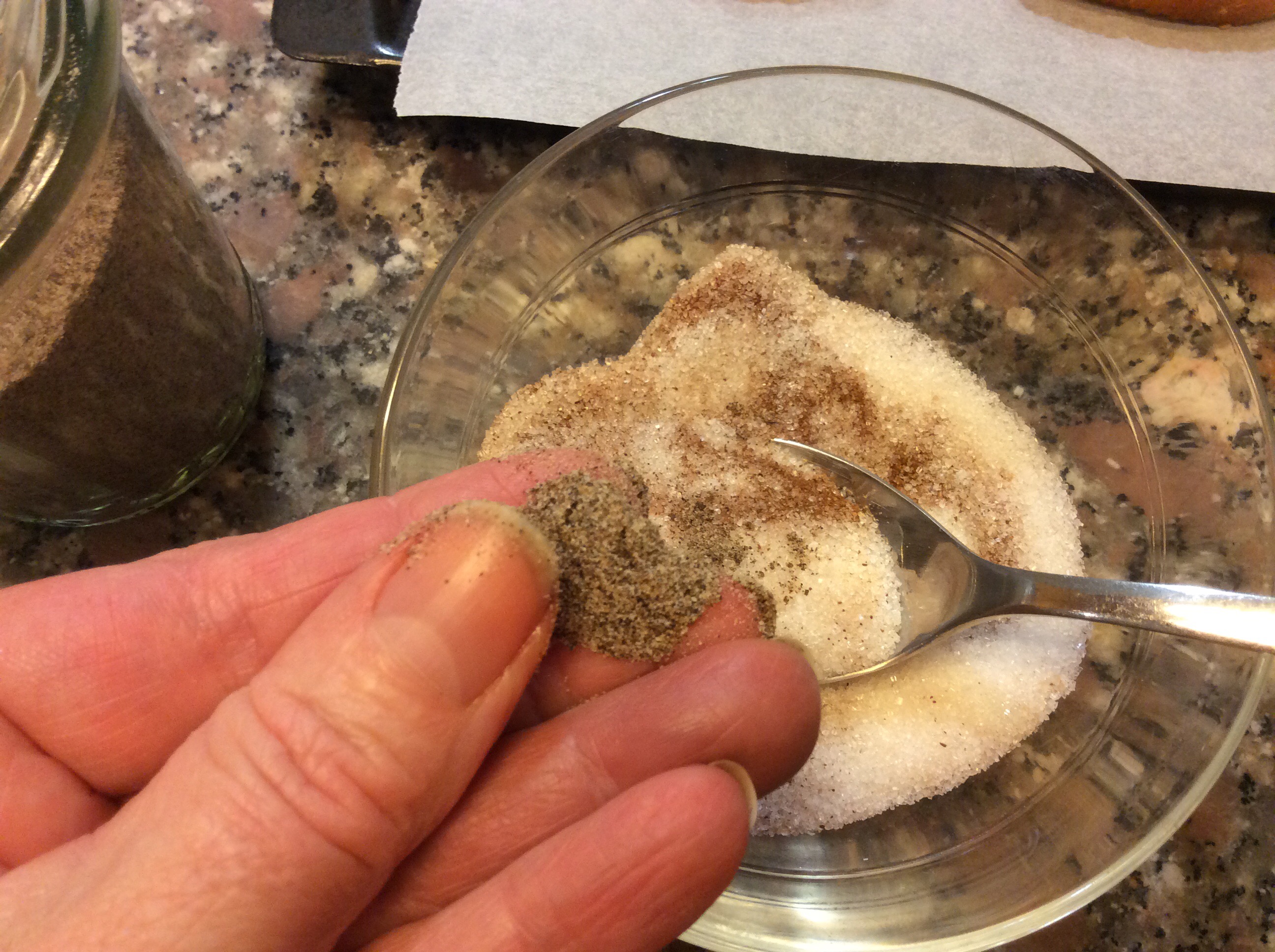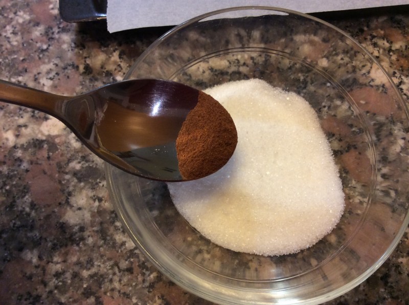 In una ciotolina verso 2/3 cucchiai di zucchero, un cucchiaino di cannella in polvere