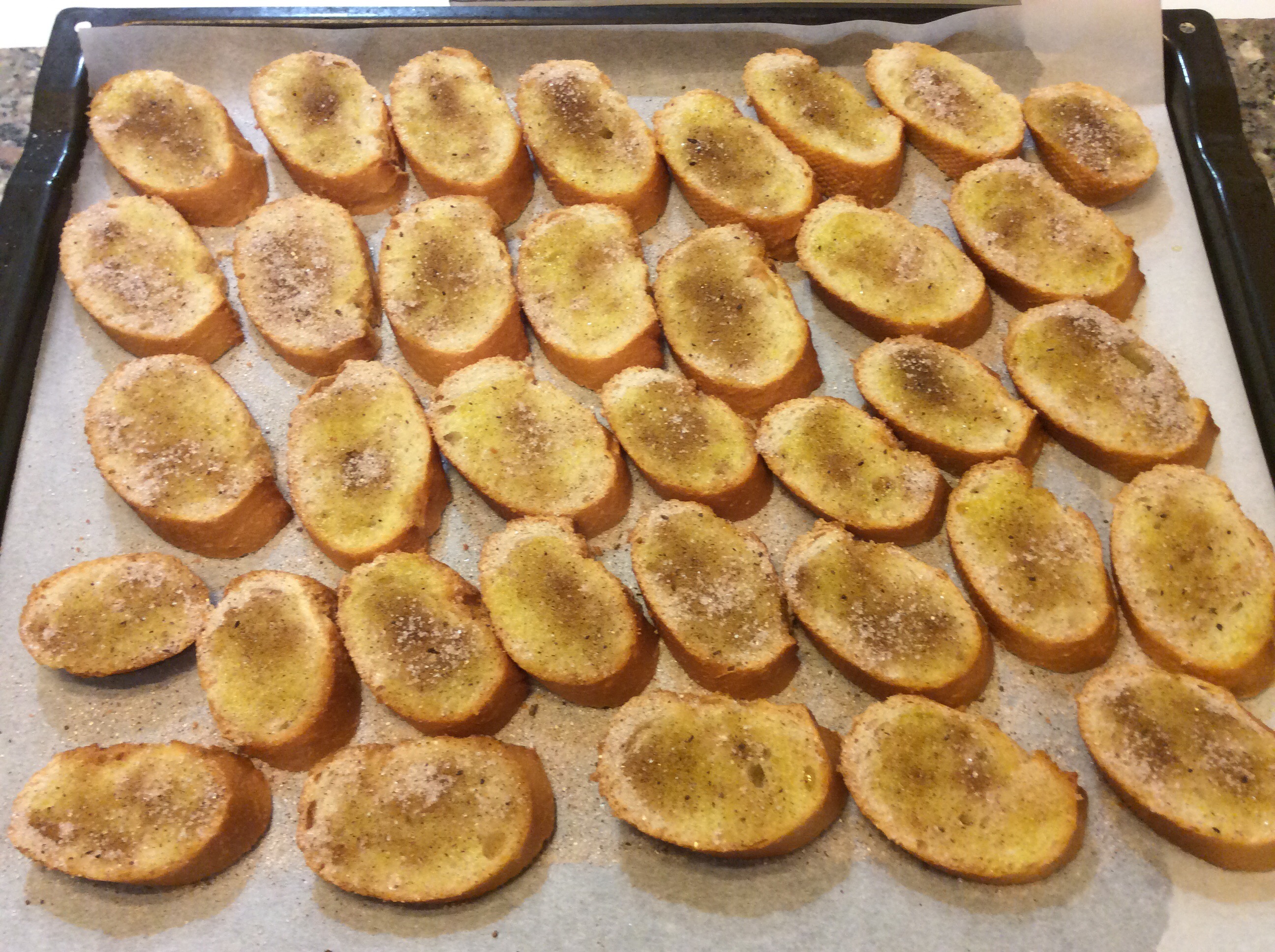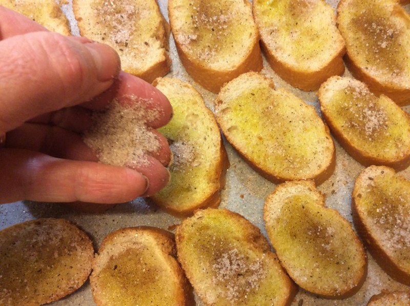 Cospargo abbondantemente con questa miscela tutte le fettine di pane