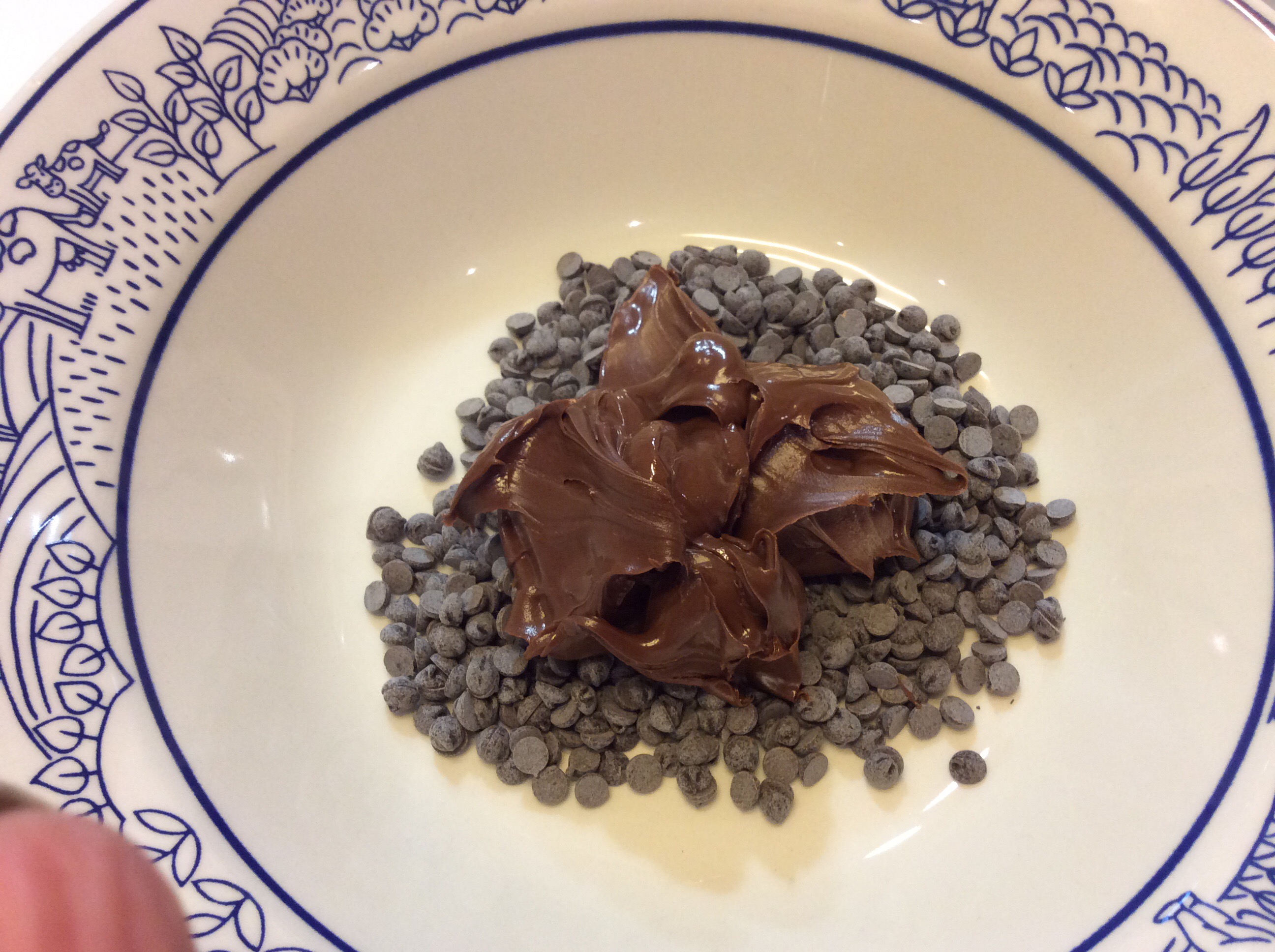 Metto il cioccolato fondente con la Nutella in una ciotola