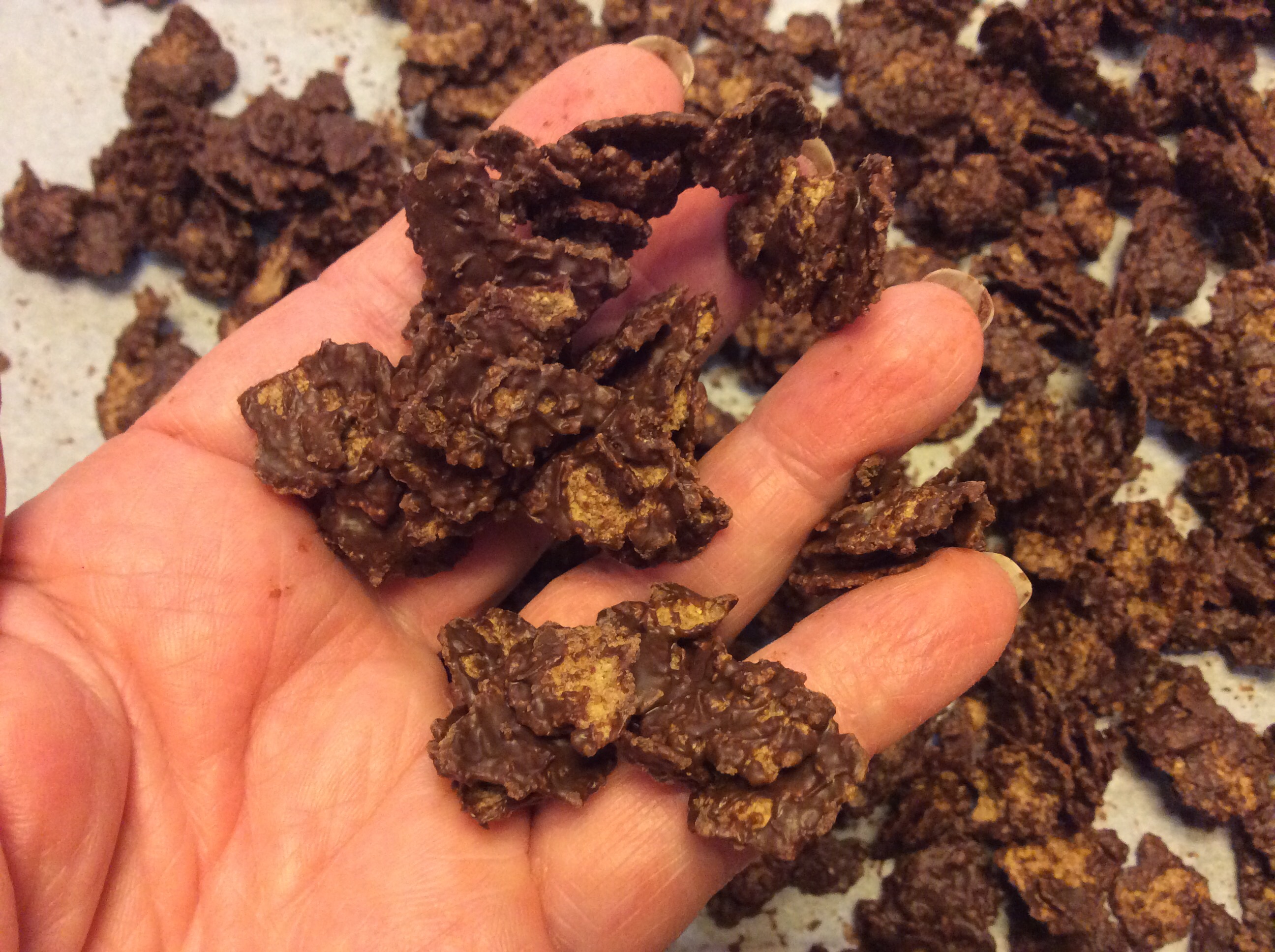 Mescolo delicatamente finchè son tutti ricoperti di cioccolato