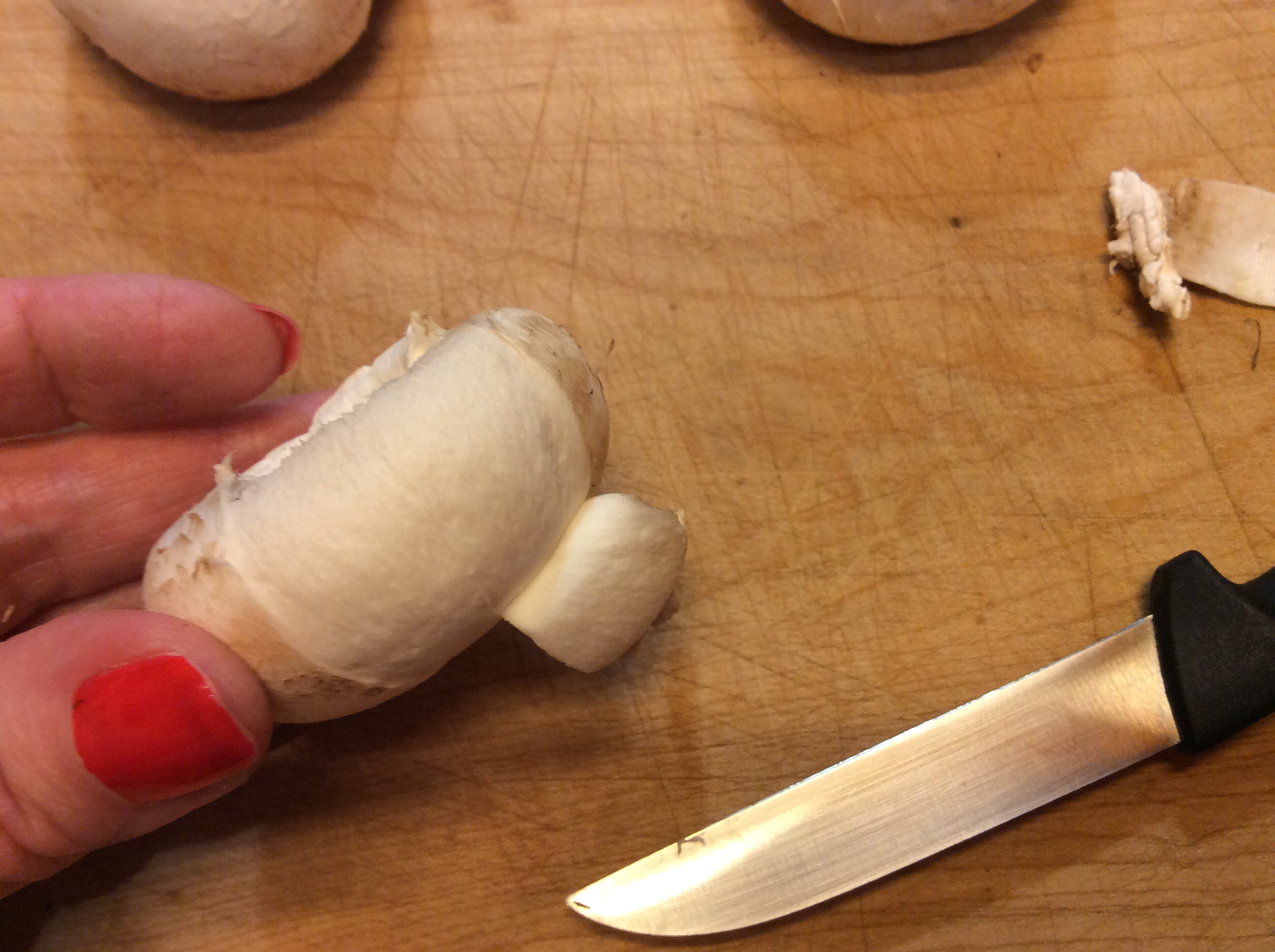 Elimino il gambo che utilizzo per un sugo, li pulisco bene con carta assorbente umida, meglio non lavarli, altrimenti velocemente e asciugandoli subito