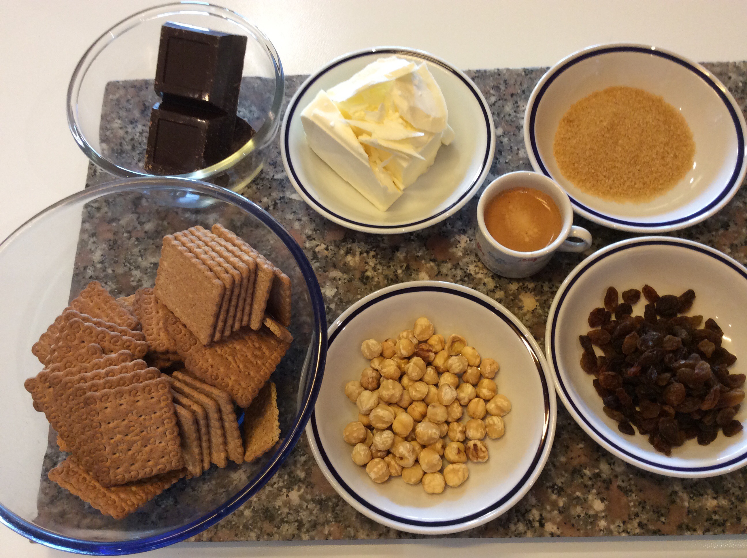 Se non avete voglia di accendere il forno e volete comunque un dolce delizioso questa ricetta fa per voi, ricorda un po’ l’impasto del salame dolce ma un po’ più croccante, se non volete il caffè per i bambini potete sostituirlo con latte o succo di arancia, potete aggiungere anche la buccia grattugiata