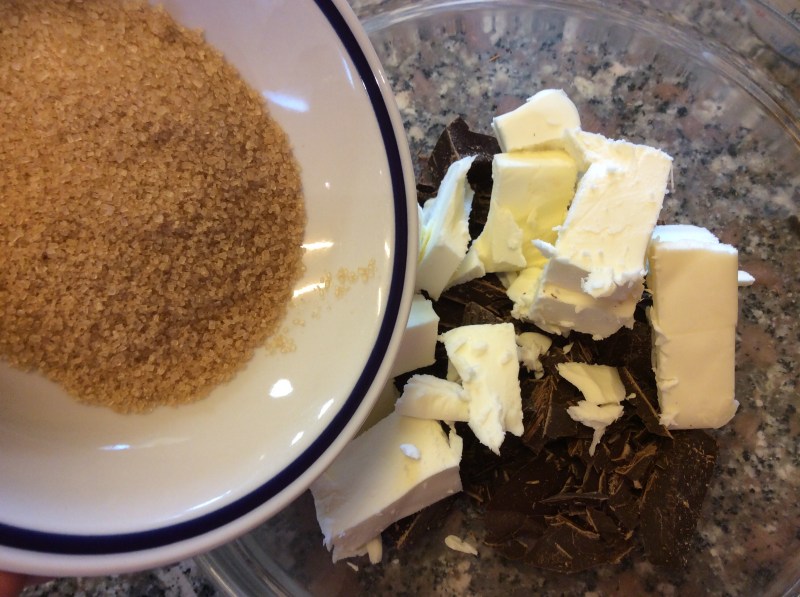 Trito a coltello il cioccolato fondente e lo metto in una ciotola con il burro a pezzi