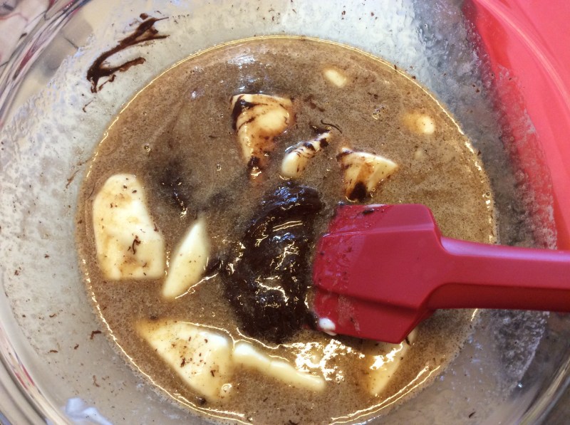Unisco i biscotti al cioccolato fuso e mescolo