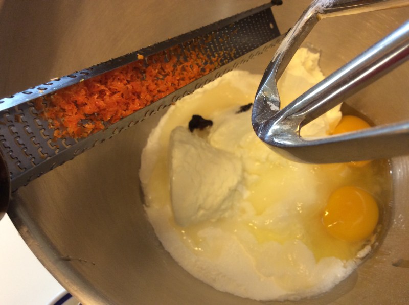 Unisco le uova e i semi che ho estratto dalla bacca di vaniglia