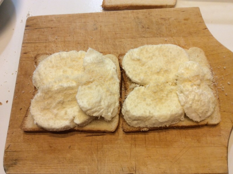 Appoggio le fettine di mozzarella su tutta la superficie di due fette di Pan carrè