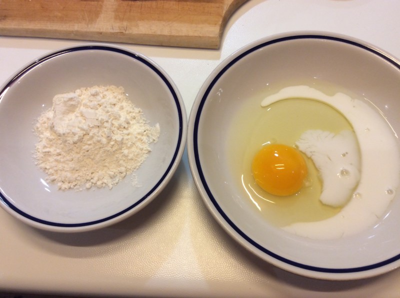 In una ciotola rompo l’uovo e lo batto con una forchetta aggiungendo un goccio di latte