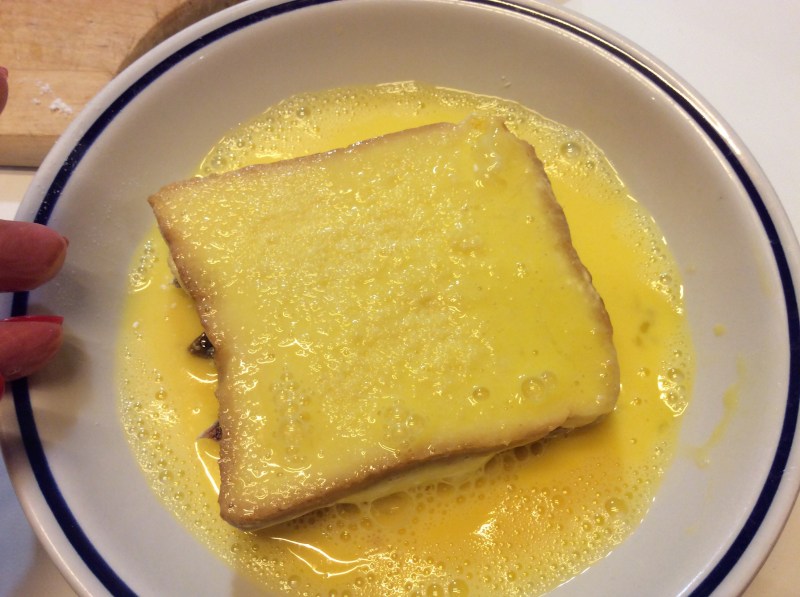 Lo metto nel l’uovo battuto e lascio che si inzuppi girandolo