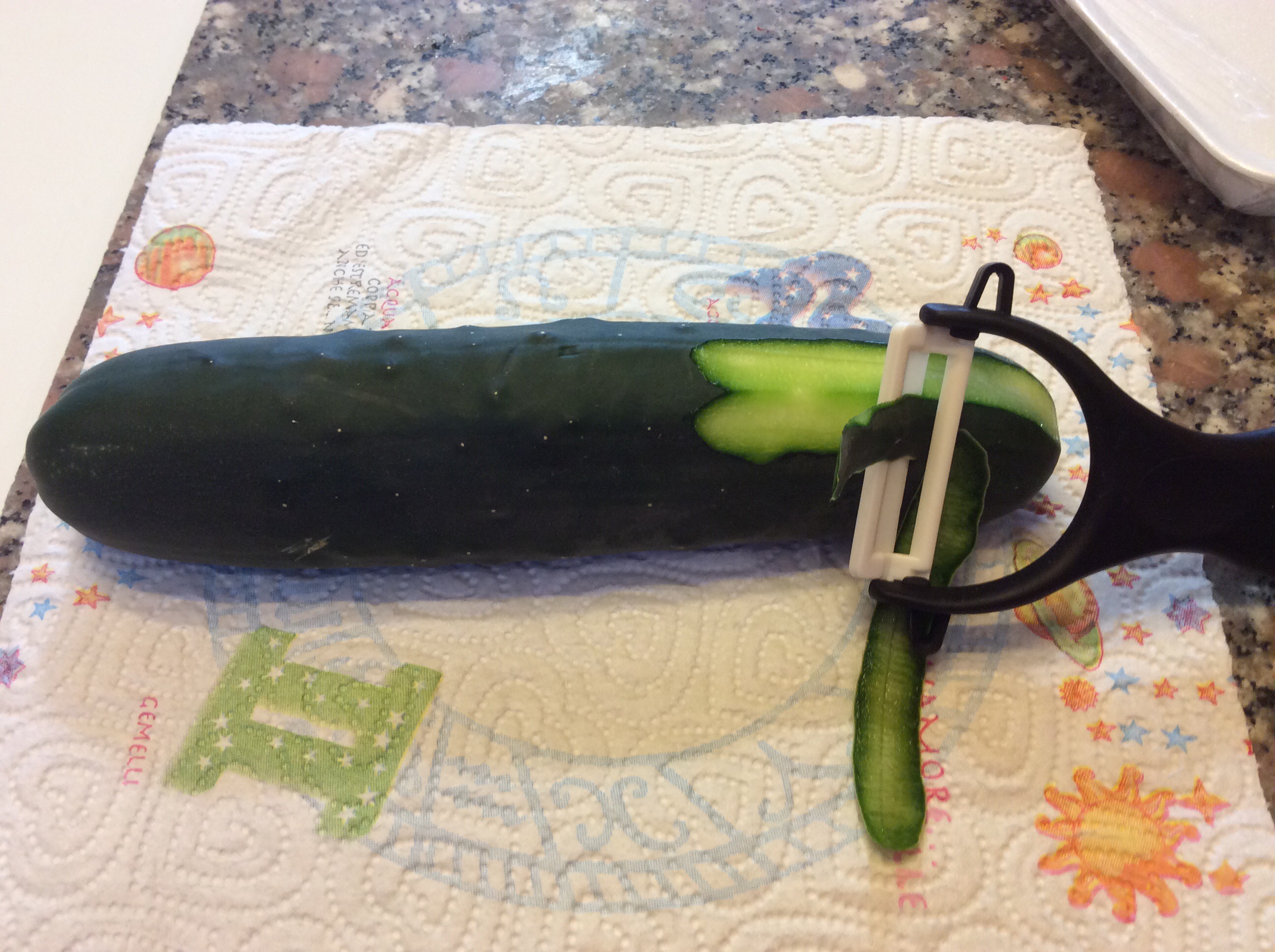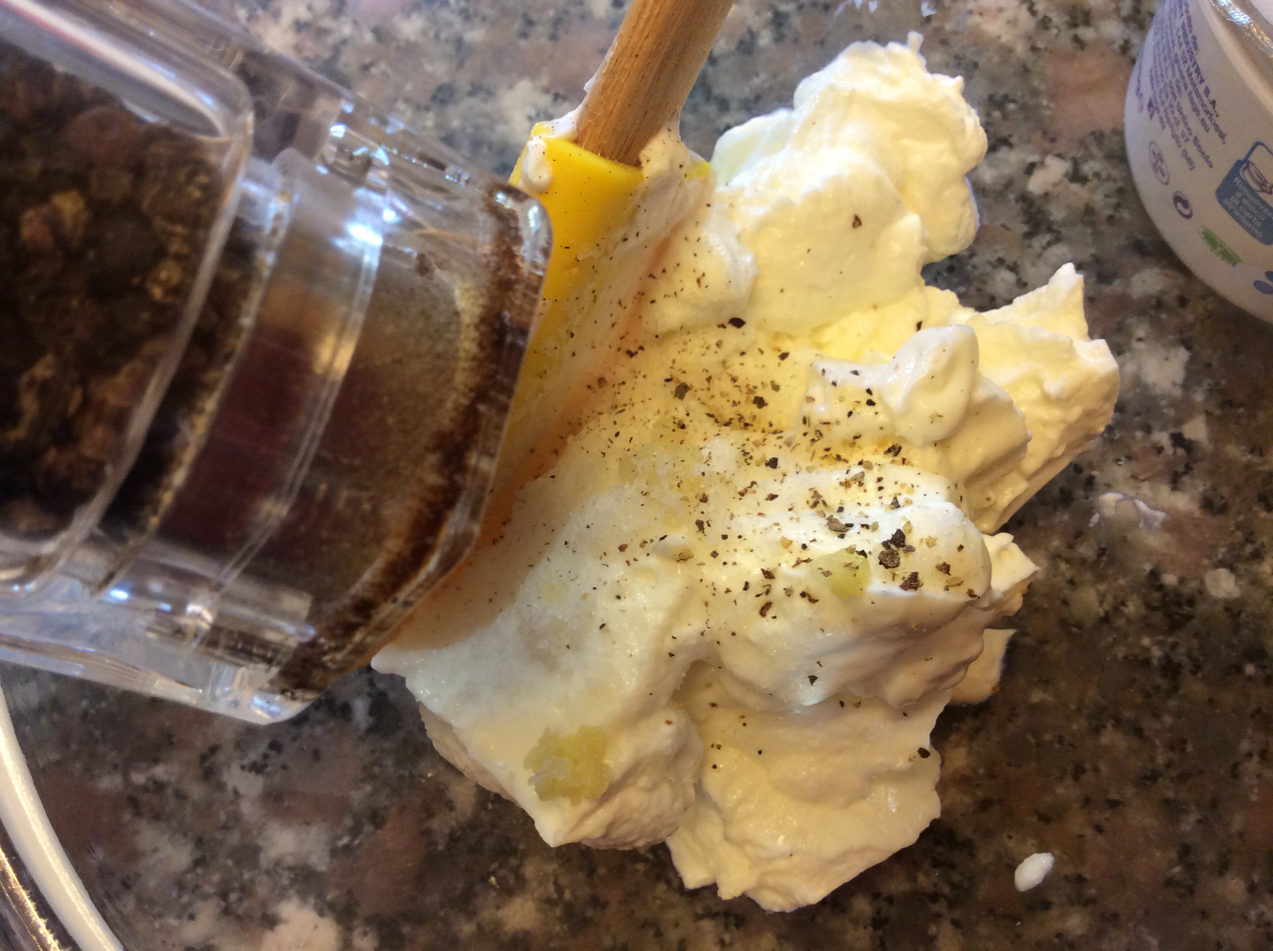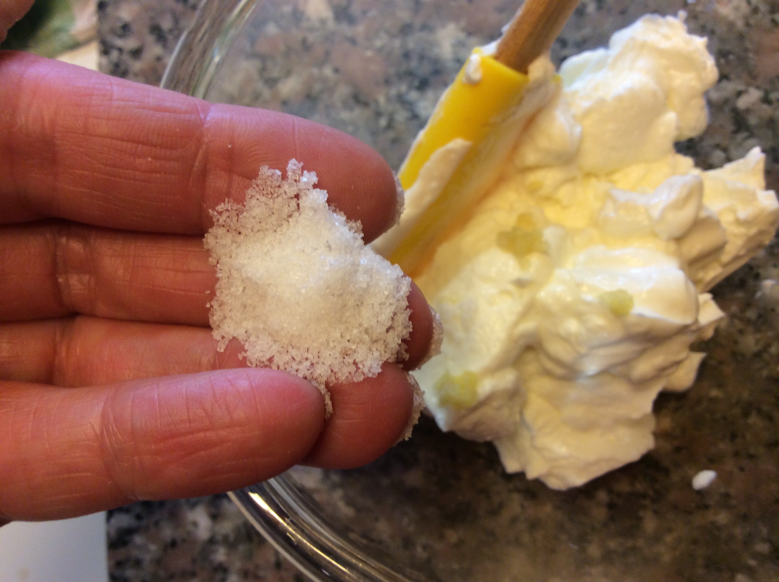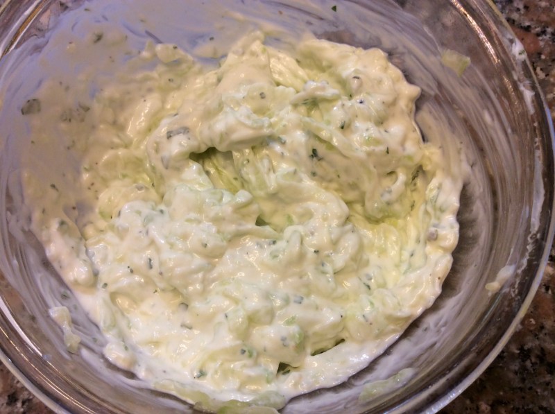 Prendo la polpa del cetriolo e la strizzo bene eliminando tutta l’acqua e la aggiungo allo yogurt, mescolo bene
