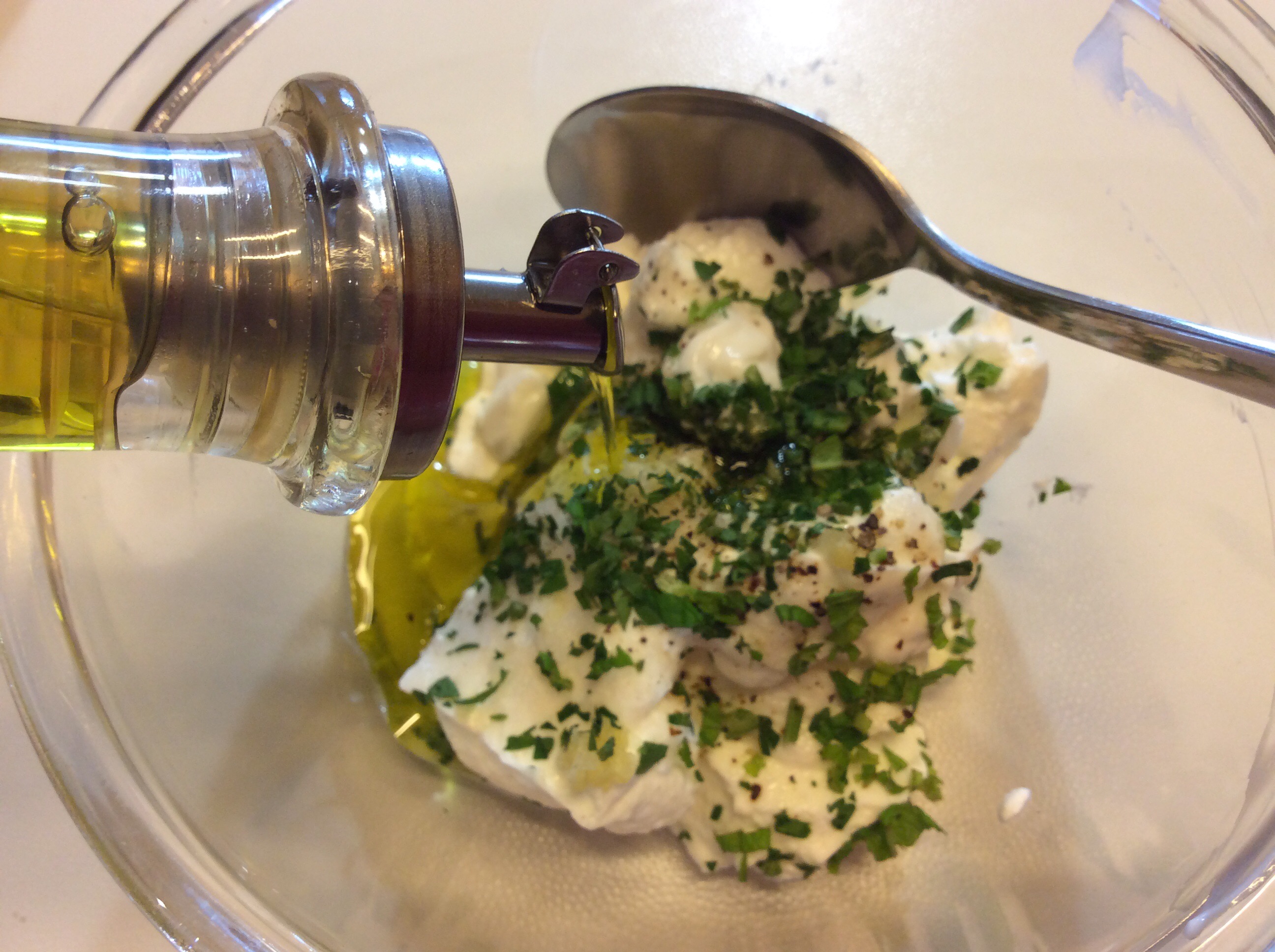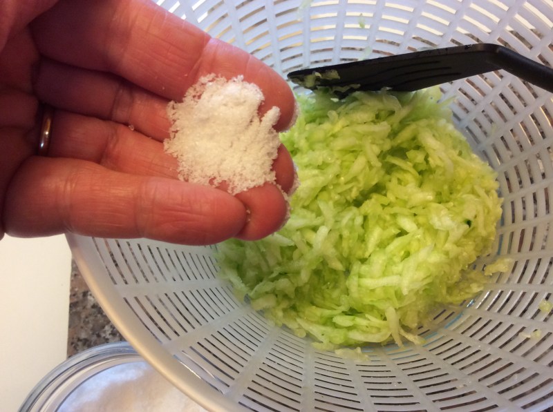 Lo metto in un colino o in un contenitore per scolare l’acqua di vegetazione si elimina così la parte amara, aggiungo un pizzico di sale