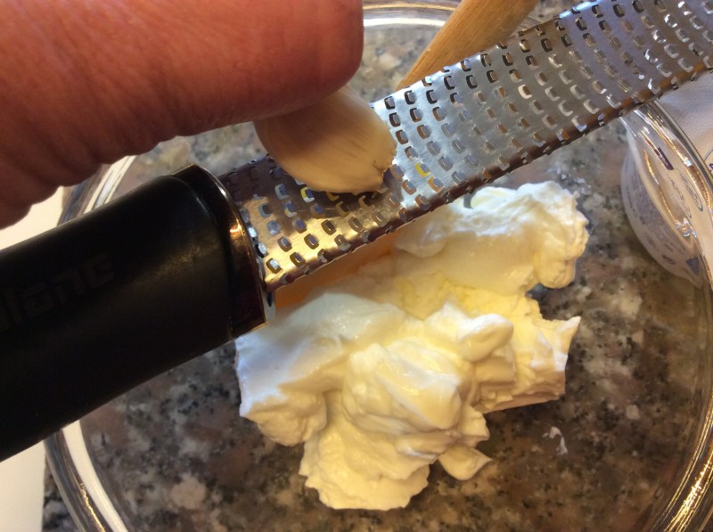 Lascio riposare per un’oretta, intanto verso lo yogurt in una ciotola e grattugio mezzo spicchio di aglio