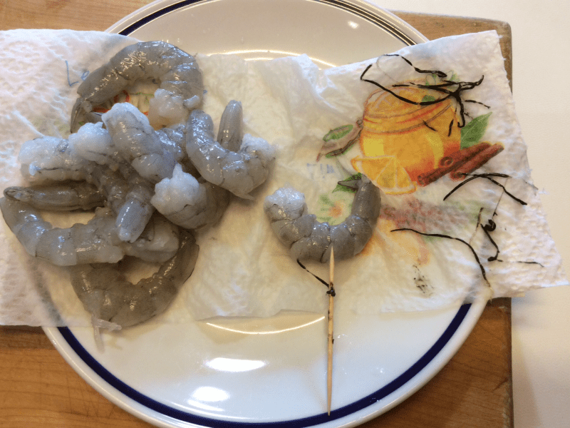 Prima di tutto pulisco le code togliendo il carapace e il budellino intestinale