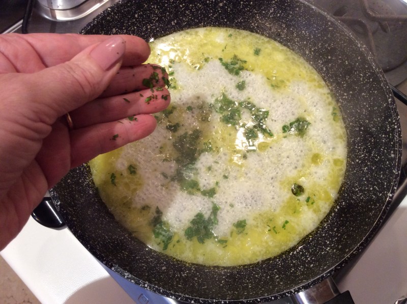 Termino il piatto decorando con le erbe aromatiche, una macinata di pepe e un filo di olio