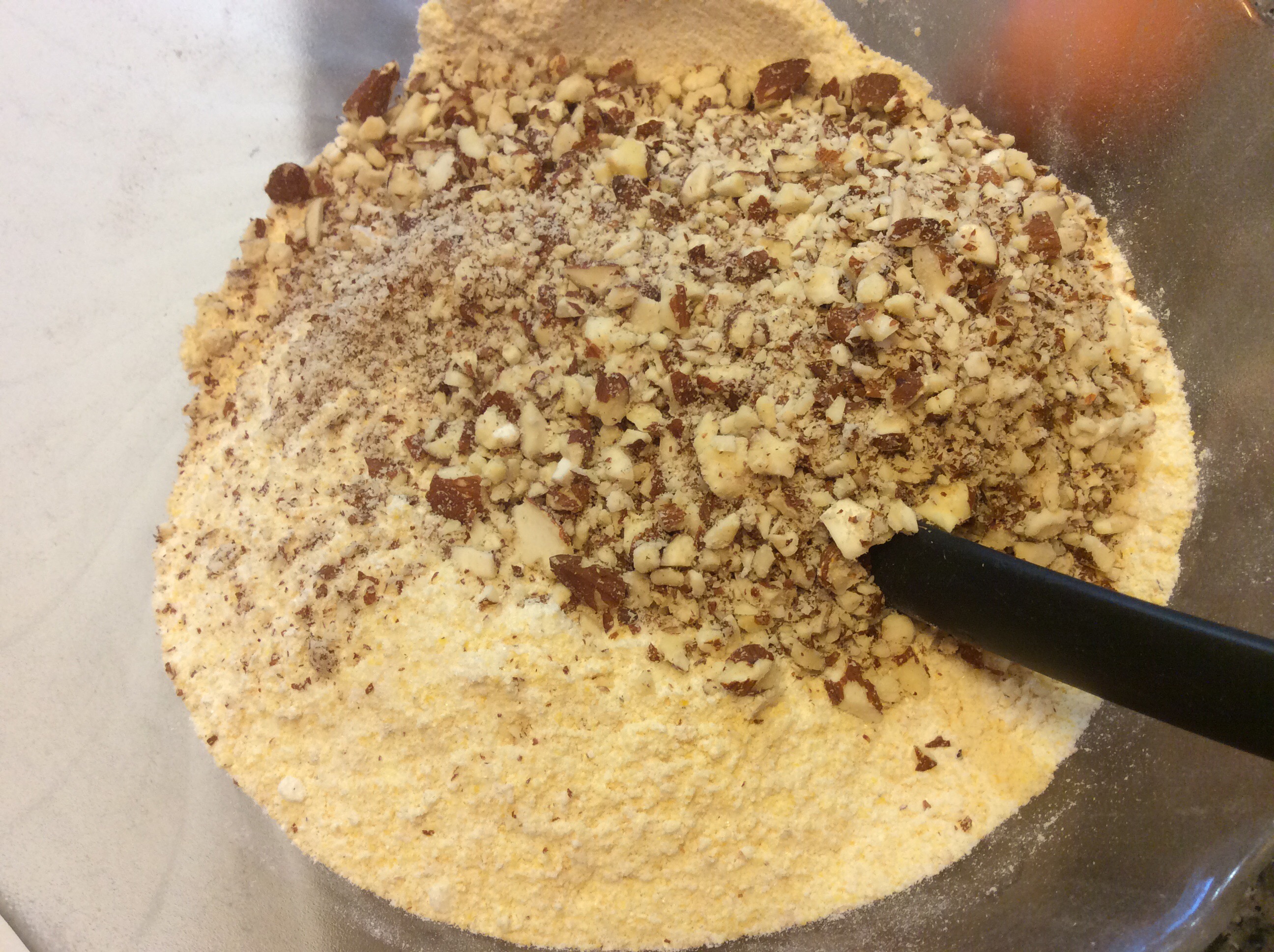 Trito grossolanamente le mandorle e ne lascio da parte alcune per decorare