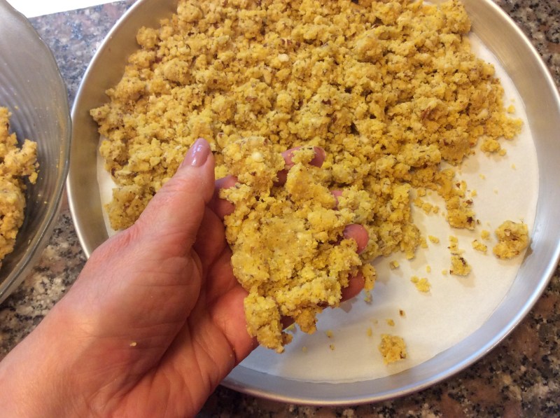Ricopro con l’impasto sbriciolato senza schiacciare